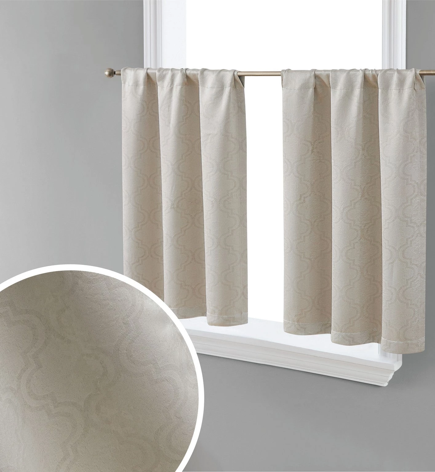 HLC.ME Redmont Lattice Back Tab Rod Pocket Tiers – Beige – Set Of 2