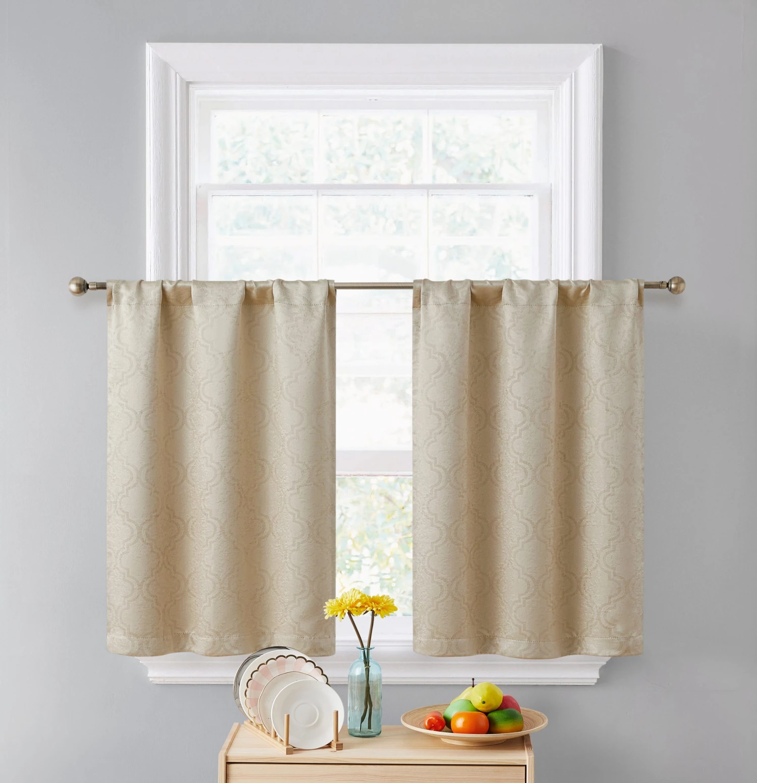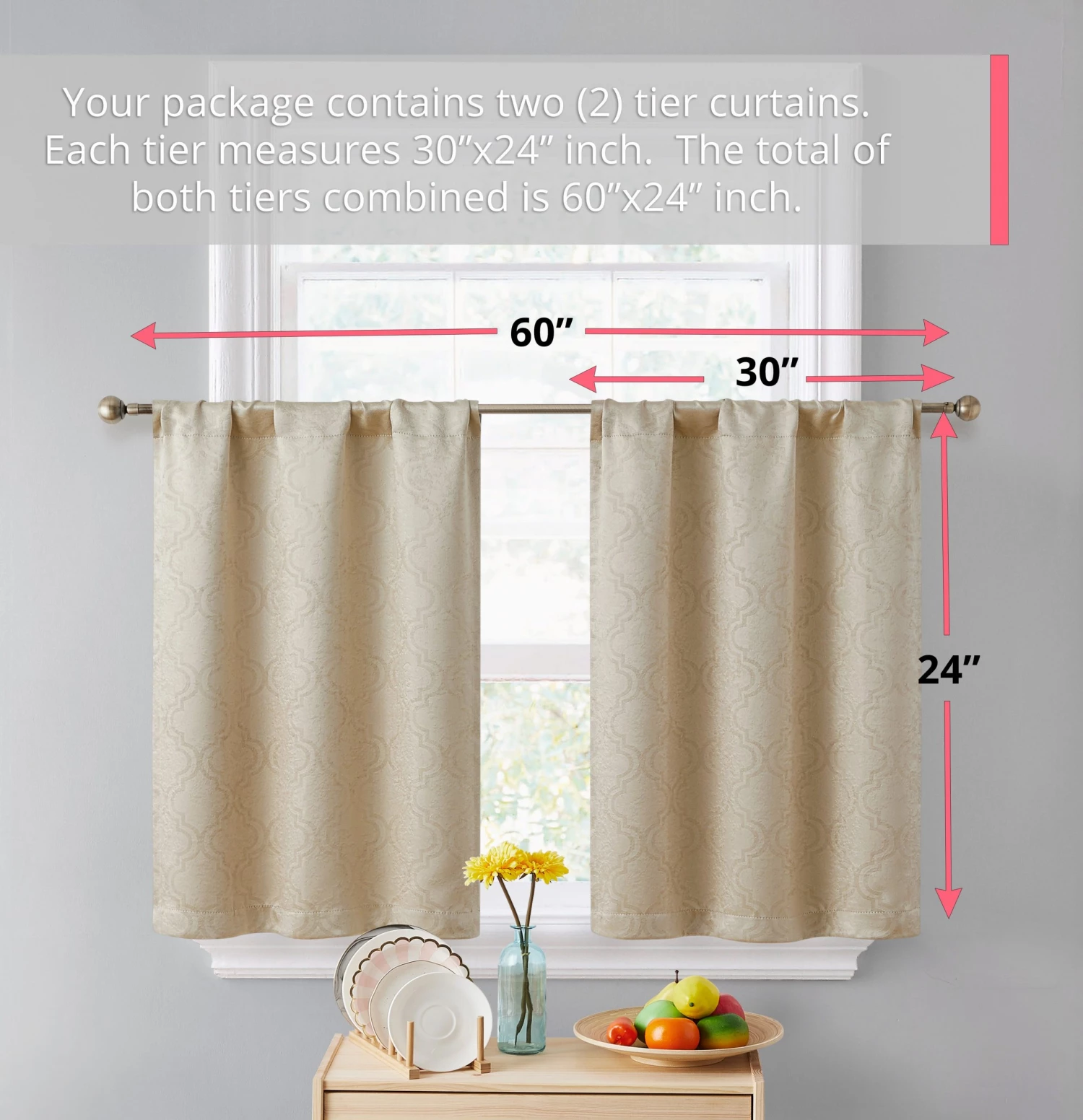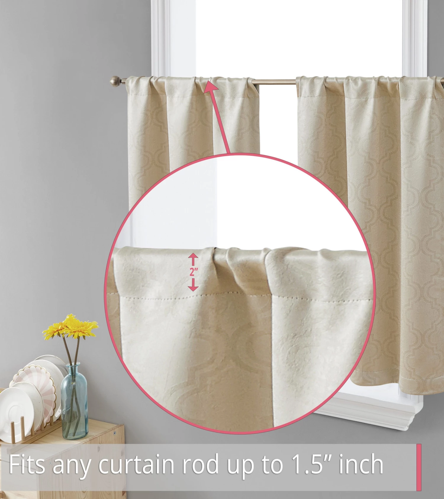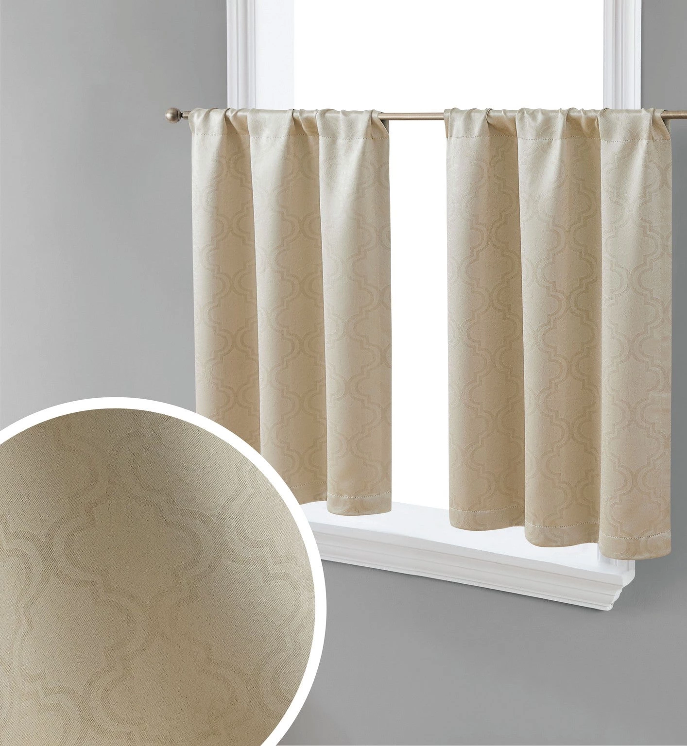 HLC.ME Redmont Lattice Back Tab Rod Pocket Tiers – Taupe – Set Of 2 Faux Linen Curtains
