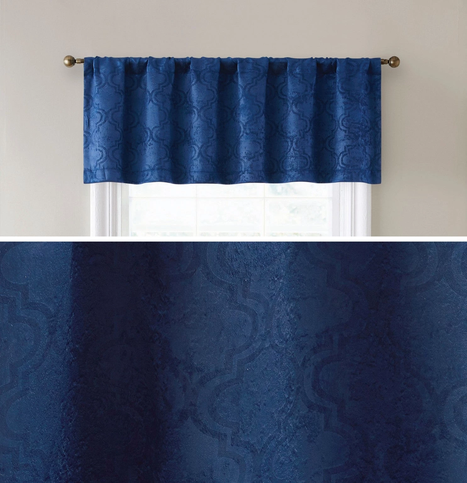 HLC.ME Redmont Lattice Back Tab Rod Pocket Valance – Navy Blue