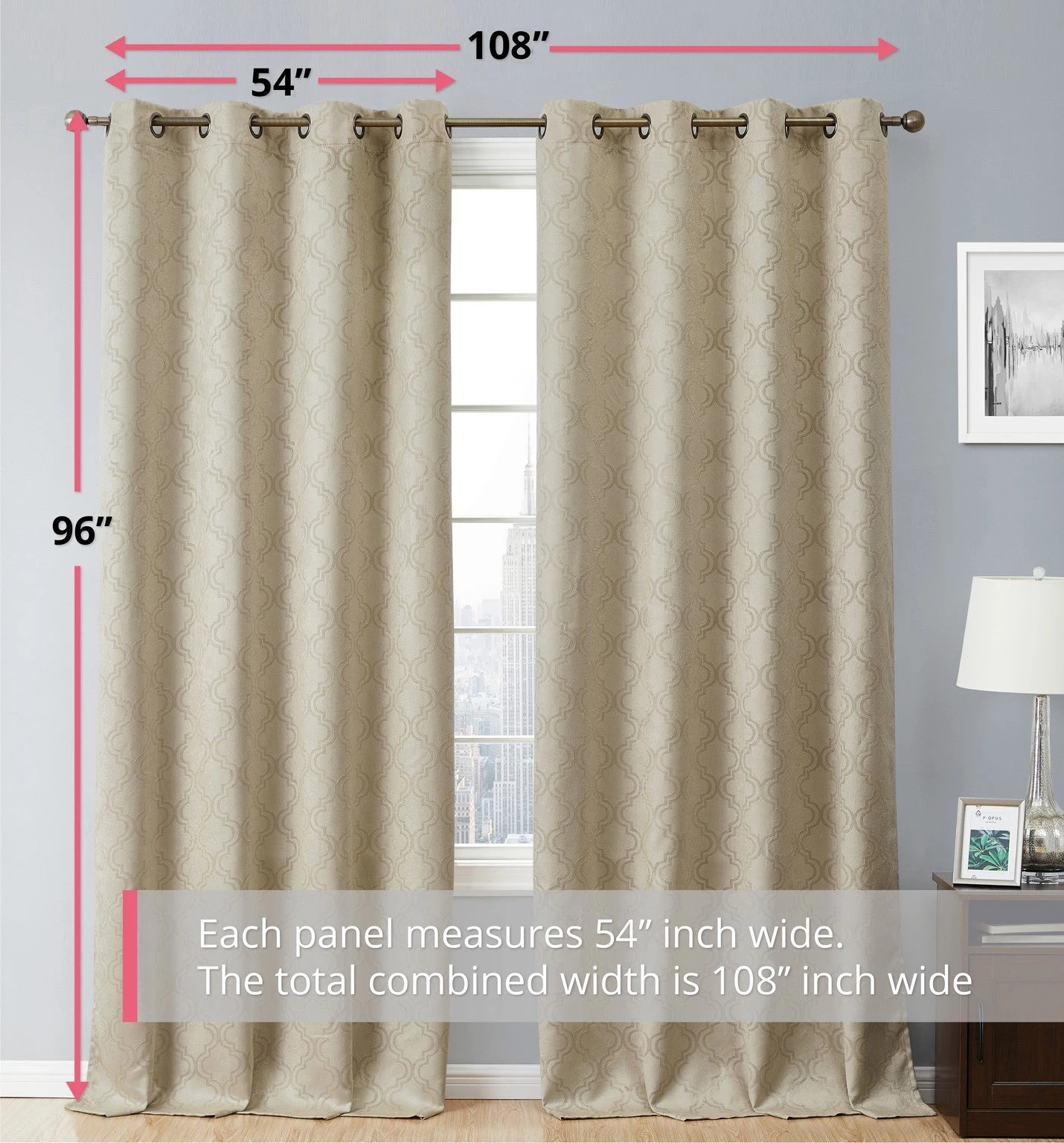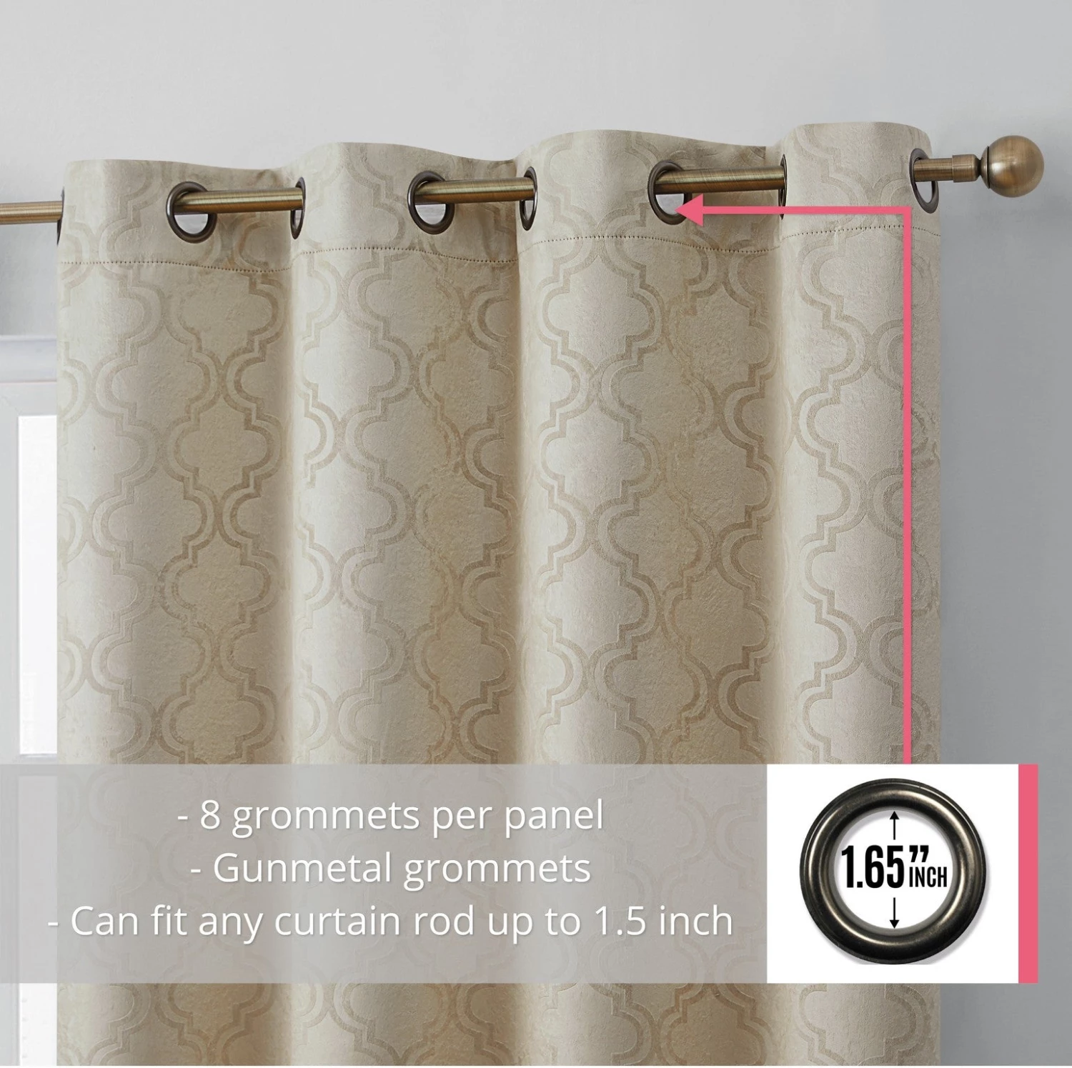HLC.ME Redmont Lattice Blackout Grommet Curtain Panels – Taupe – Set Of 2 Blackout Curtains