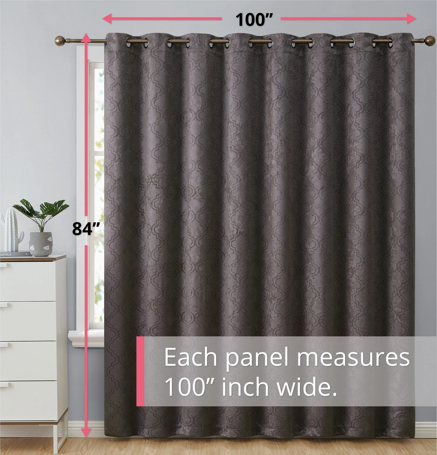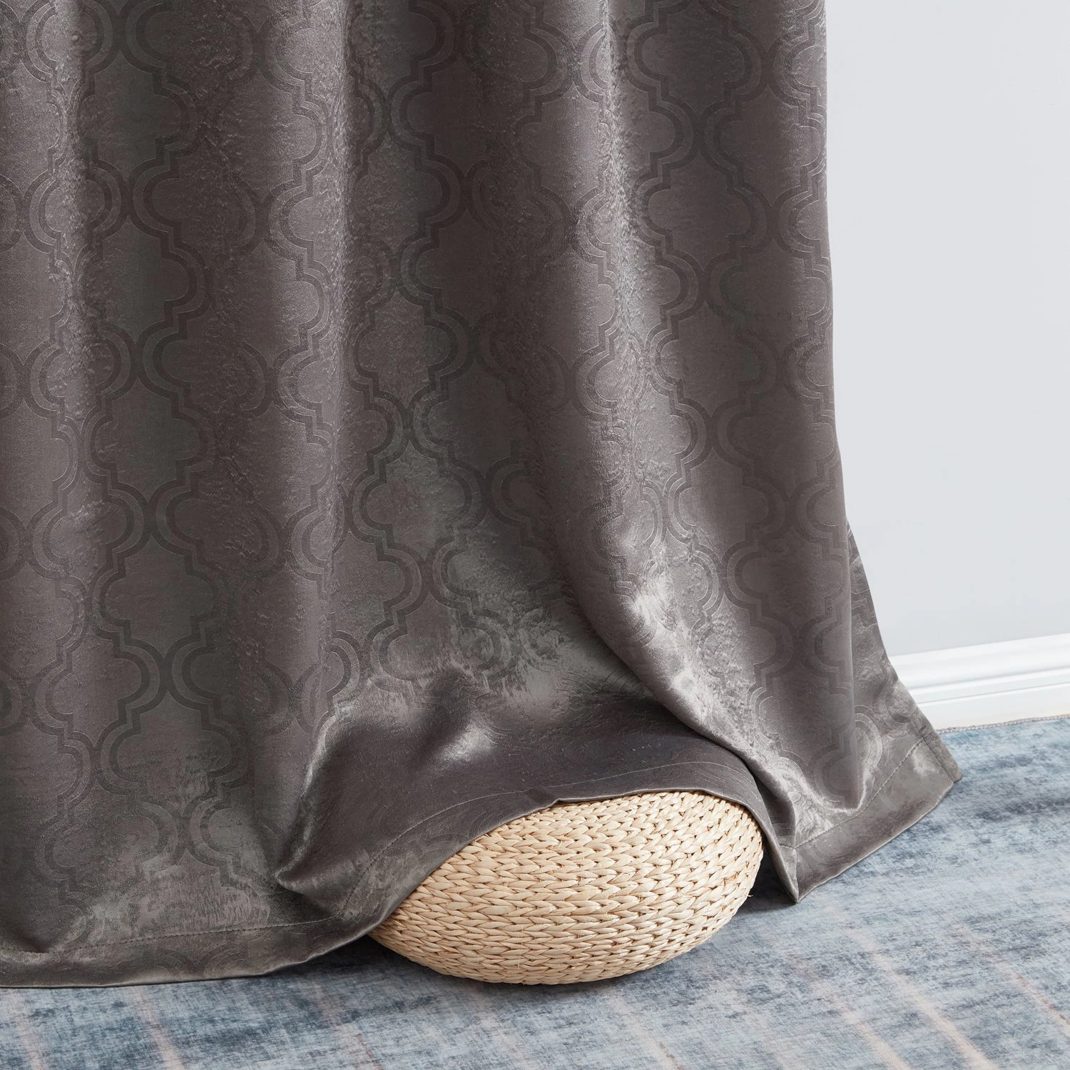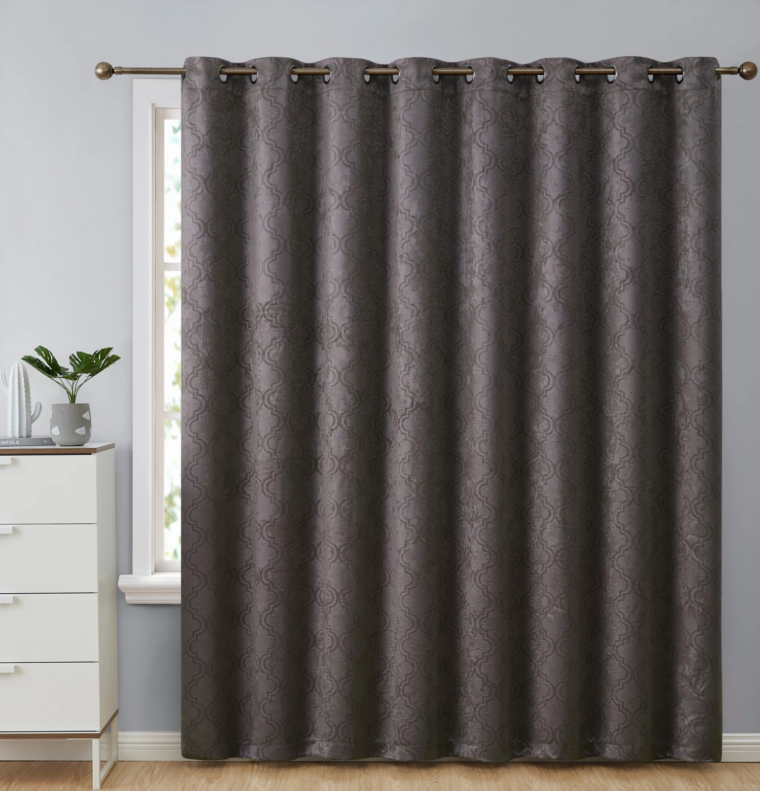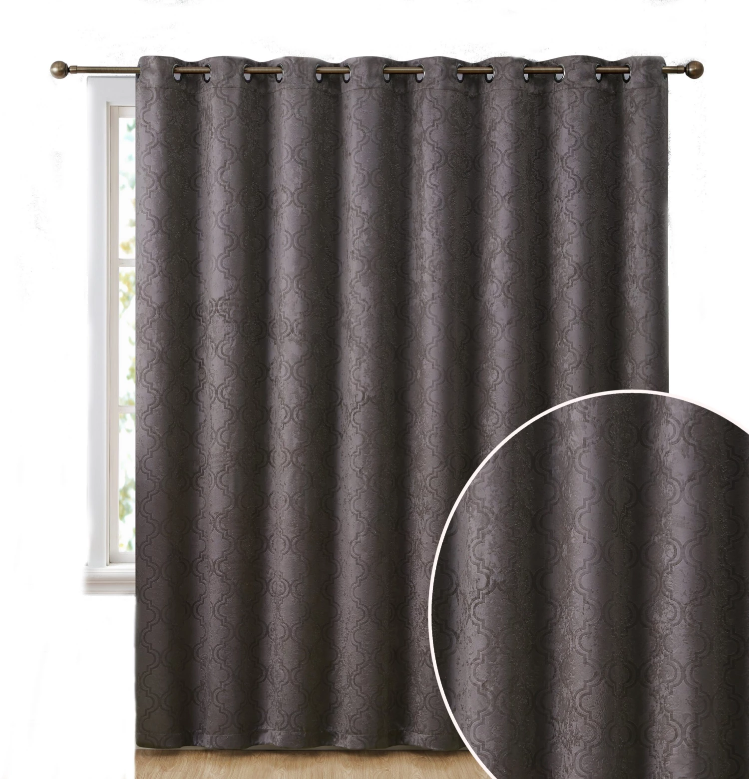 HLC.ME Redmont Lattice Blackout Grommet Patio Door Panel – Dark Grey Faux Linen Curtains