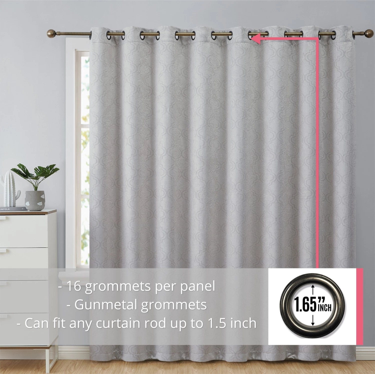 HLC.ME Redmont Lattice Blackout Grommet Patio Door Panel – Light Grey