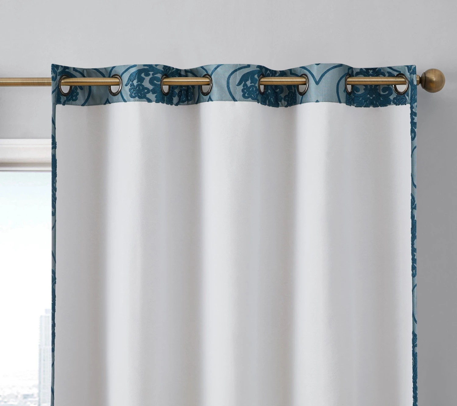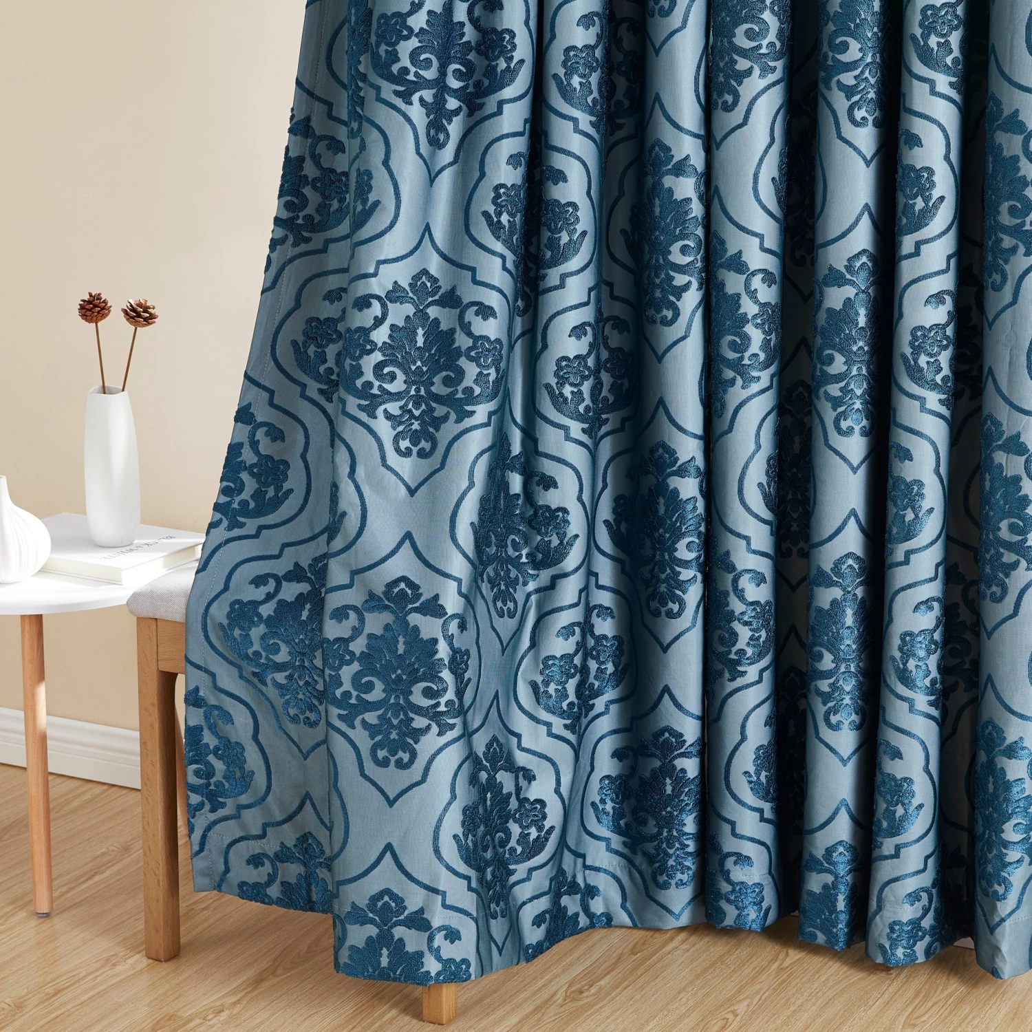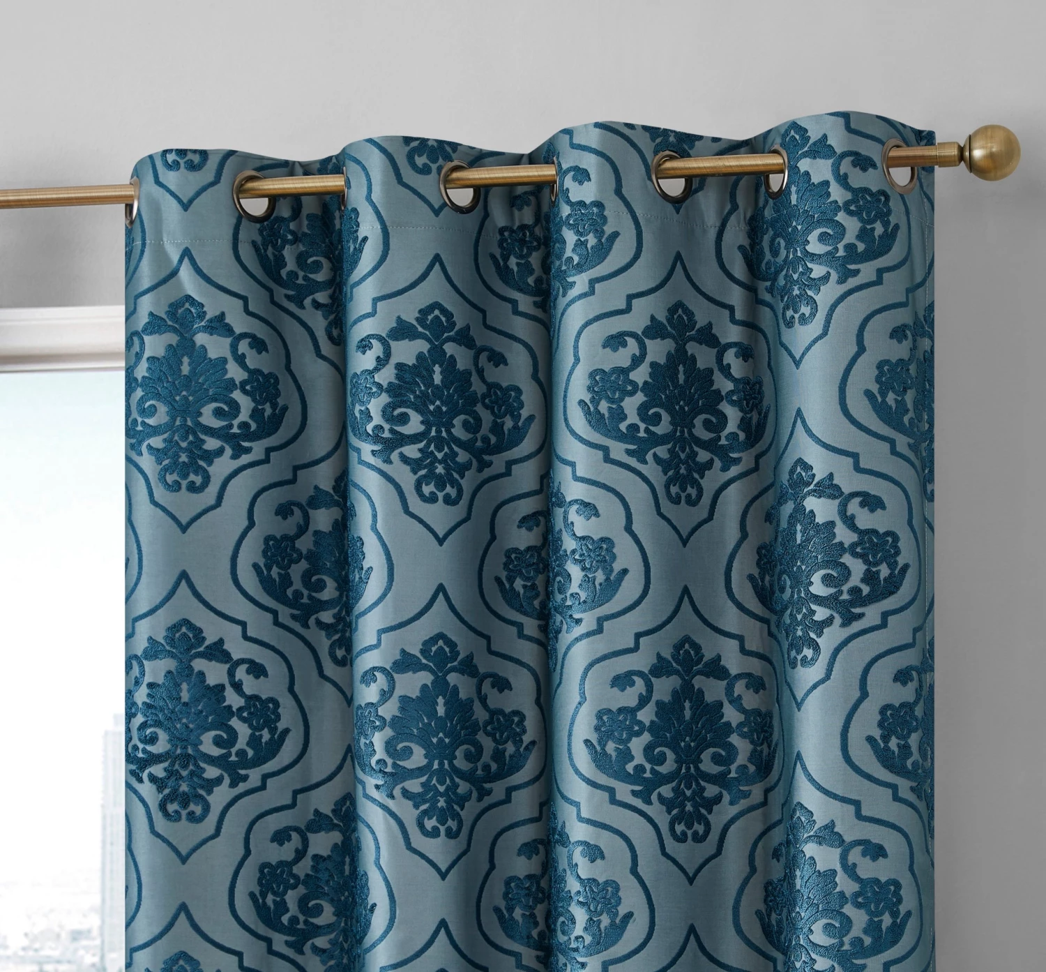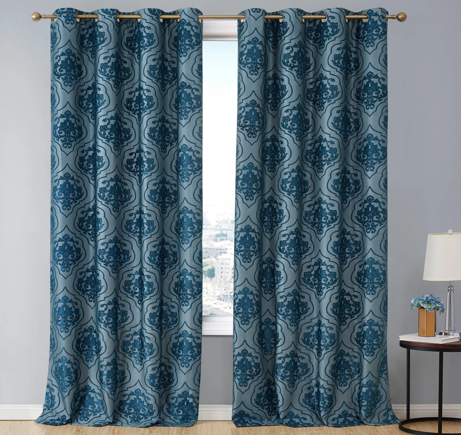 HLC.ME Room-Darkening Curtains Damask Flocked 100% Blackout Grommet Curtain Panels – Teal – Set Of 2