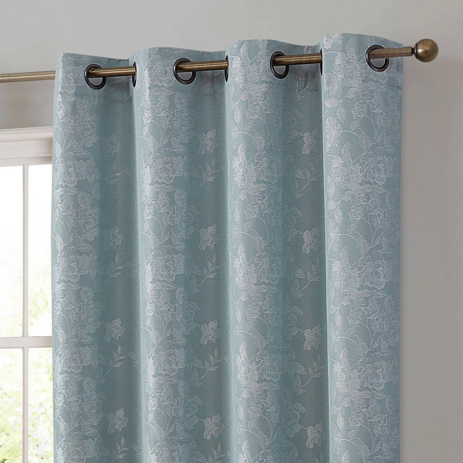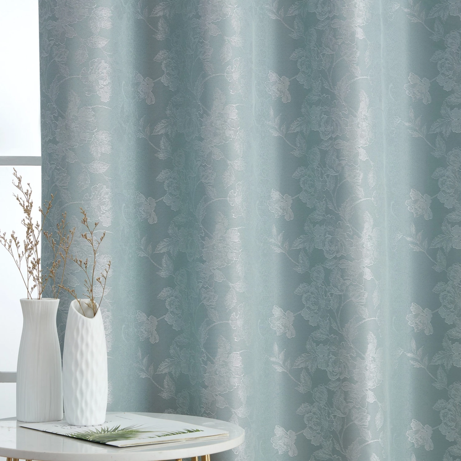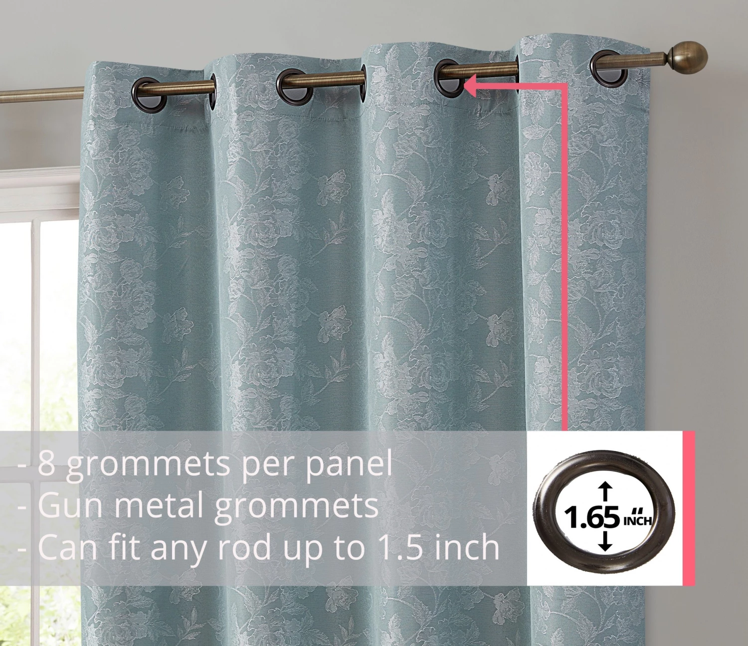 HLC.ME Serenity Floral 100% Complete Blackout Grommet Curtains – Seafoam Green – Set Of 2