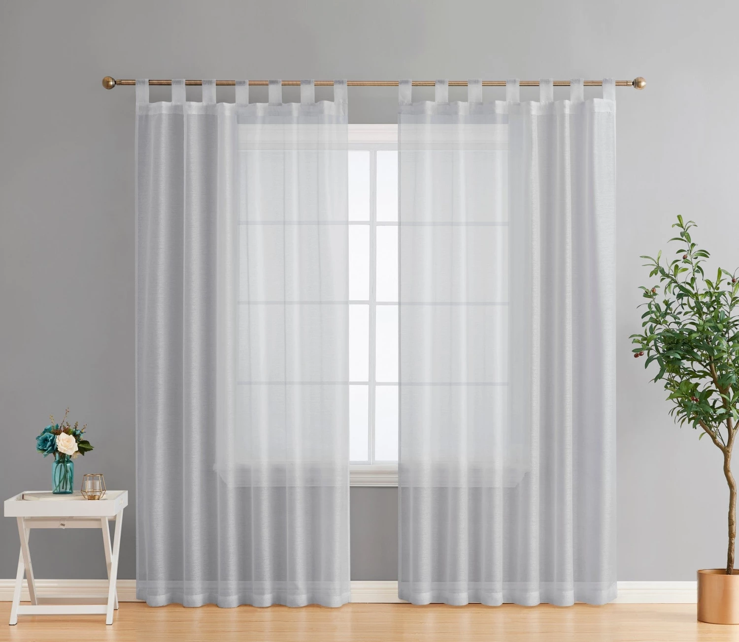 HLC.ME Sheer Curtains Addison Sheer Tab Top Panels – Silver Grey – Set Of 2