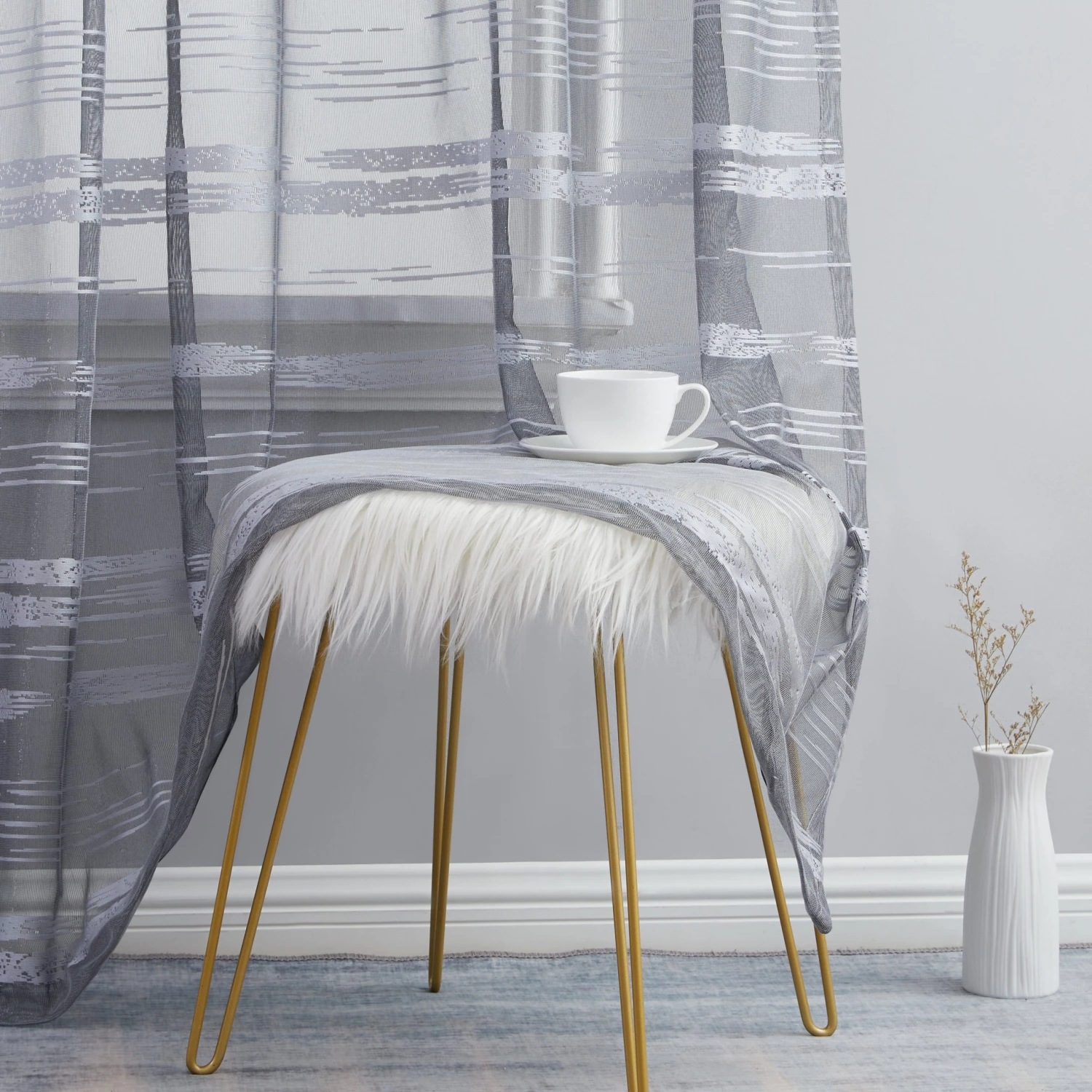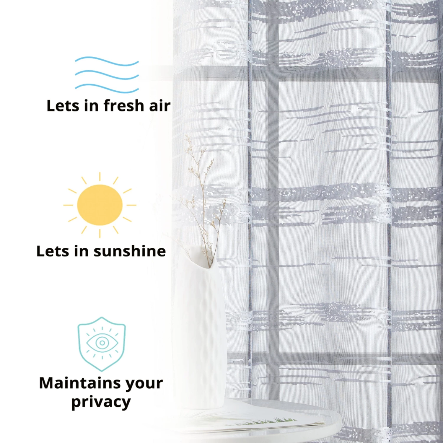 HLC.ME Sheer Curtains Broadway Stripe Sheer Grommet Panels – Silver/Light Grey – Set Of 2