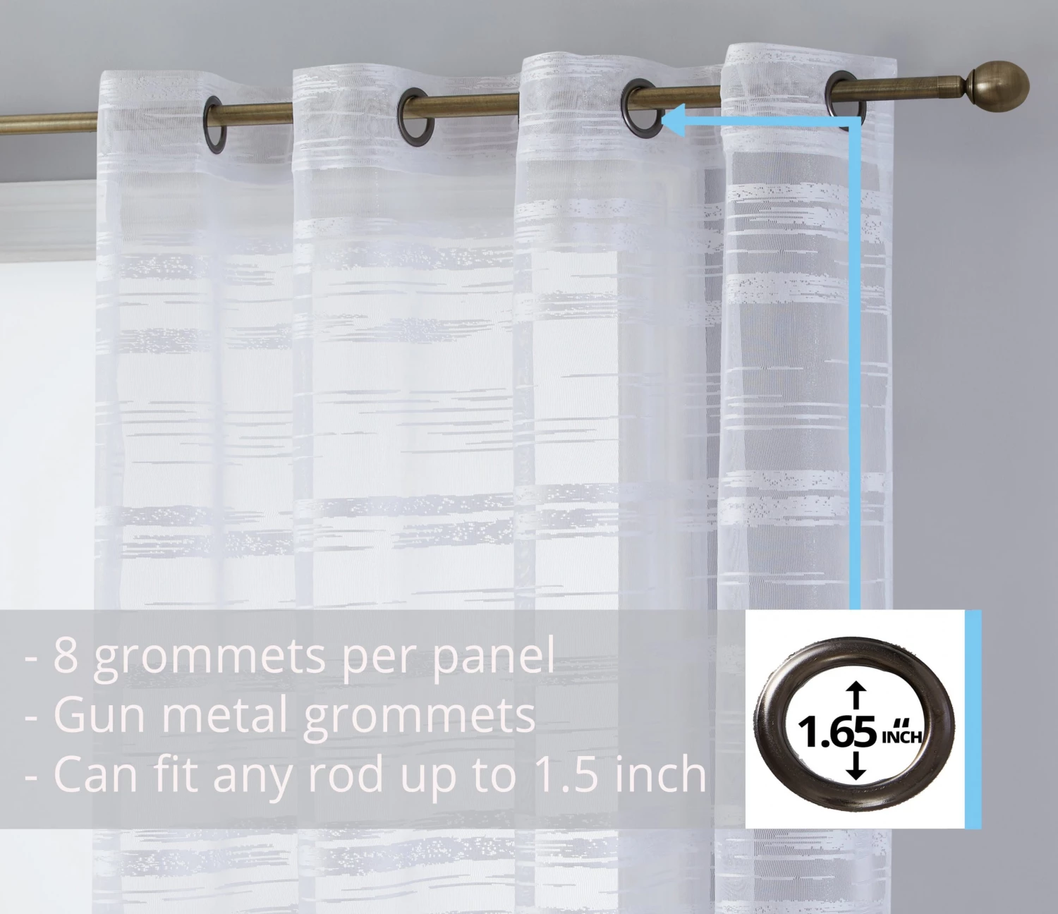 HLC.ME Sheer Curtains Broadway Stripe Sheer Grommet Panels – White – Set Of 2
