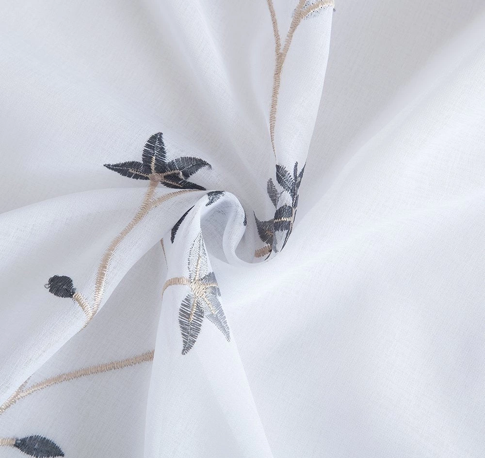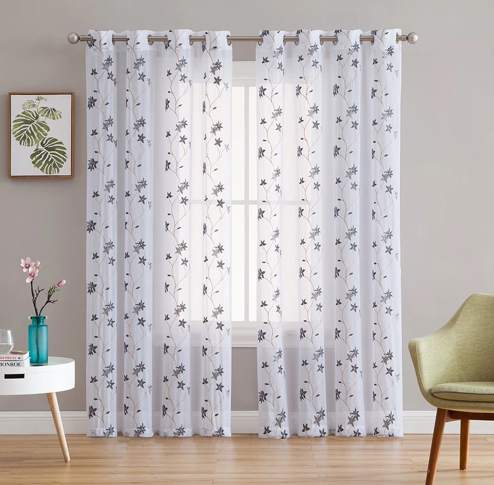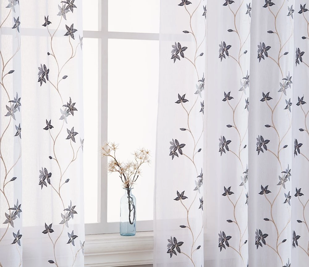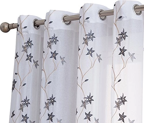 HLC.ME Sheer Curtains Emma Floral Sheer Grommet Curtain Panels – Grey – Set Of 2