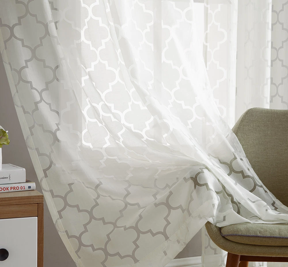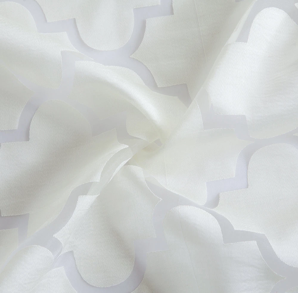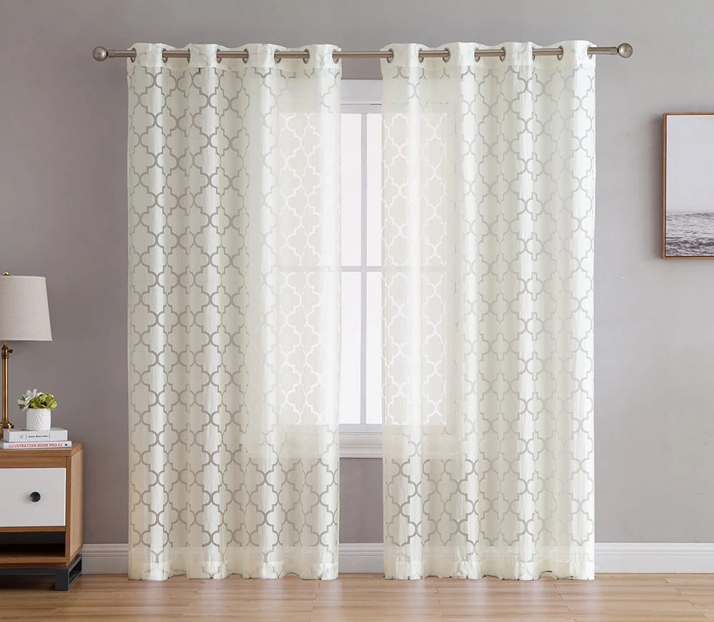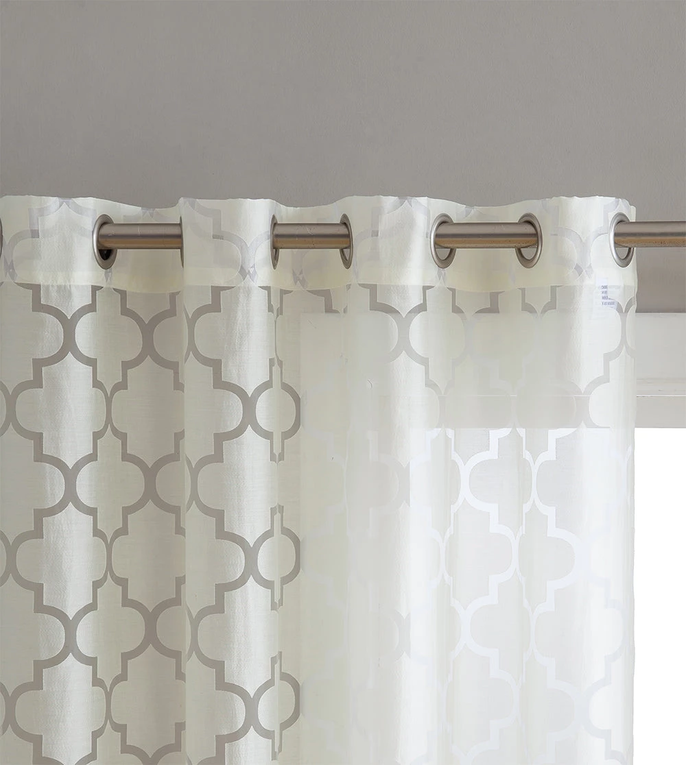 - Package contains two (2) lattice sheer burnout window curtain panels.
