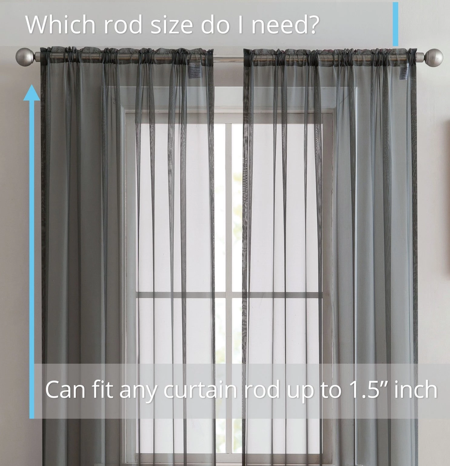 Sheer voile curtains give a light, romantic and airy look to a room by allowing sunlight to pass through the curtains. The fabric of voile curtains makes a unique window treatment that allows you to see outside but still allowing for privacy. For most home owners this is a great feature of sheer voile grommet curtains. Light weight sheer voile curtains are a very effective decorating tool. Because of the lightness to the fabric allow light to enter the room while still providing privacy. They can be used for in many other ways as well. One of the great qualities to sheer voile curtains is they they come in a wide variety of colors and are generally inexpensive. This allows your to use them in every room of the house without breaking your budget. Sheer curtains are very easy to install and make them a great addition to any room as you can create a designer look with little effort. Each curtain panel can fit a curtain rod up to 1. 5 inch. Fiber Content: 100% Polyester. Package contains two (2) voile sheer window curtain panels. Care Instructions: Machine wash cold, Gentle Cycle. Use only non-chlorine. Bleach as needed. Tumble Dry Low. Iron on lowest setting as needed.