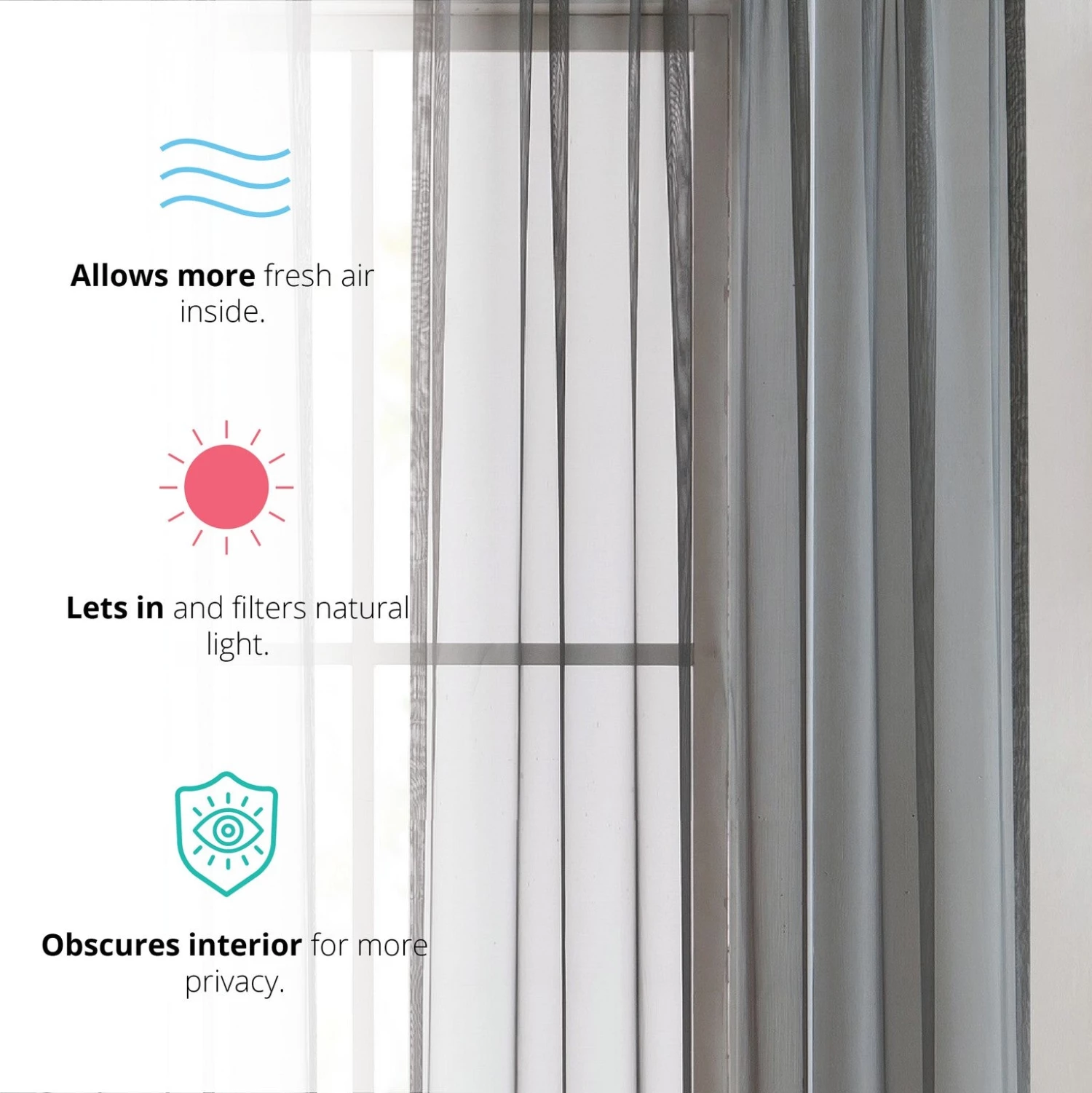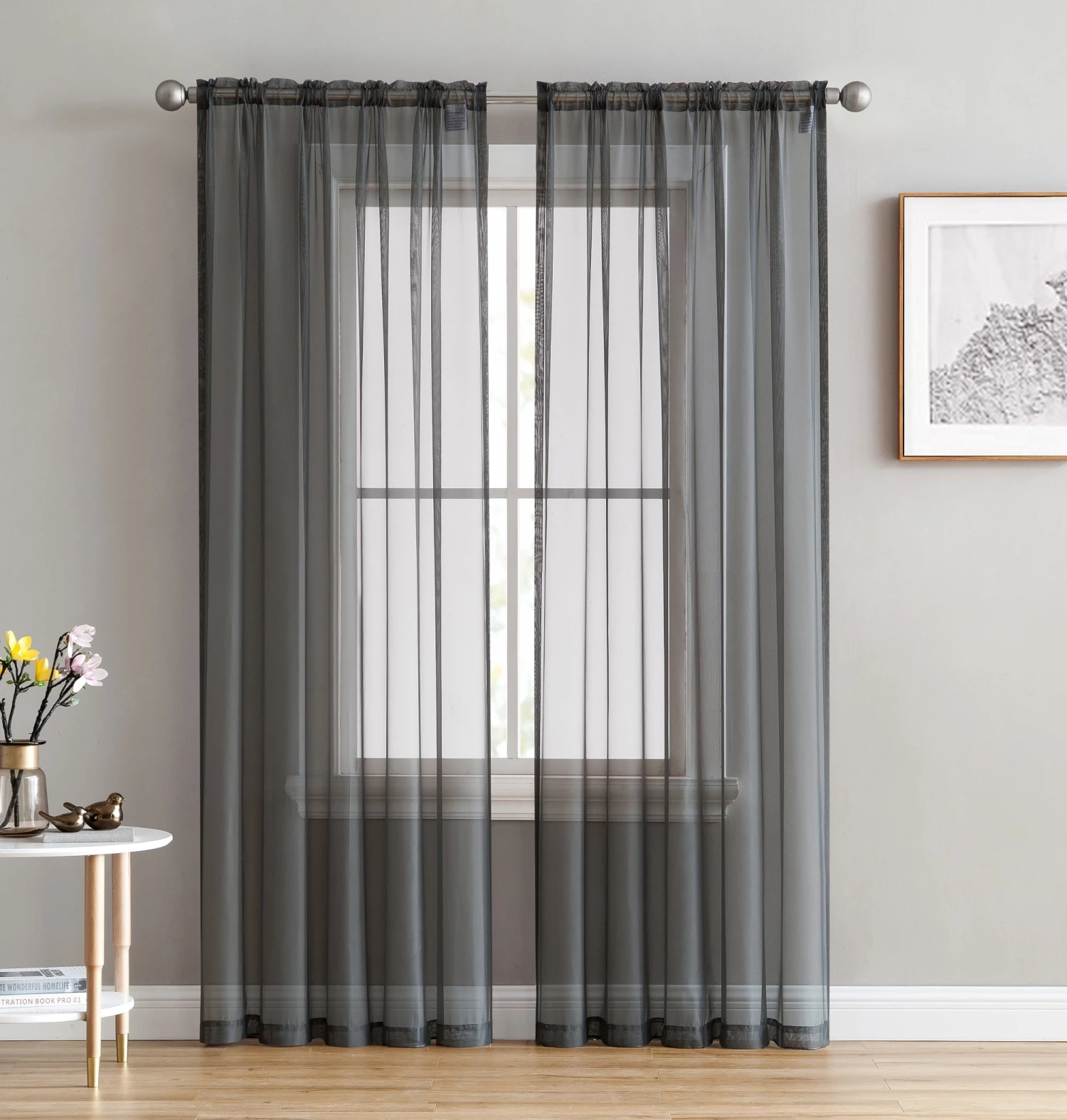 HLC.ME Sheer Curtains Lucento Sheer Rod Pocket Curtain Panels – Charcoal Grey – Set Of 2