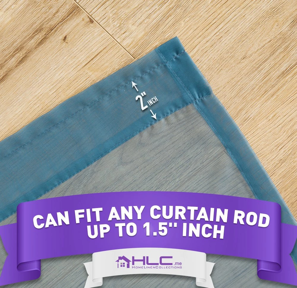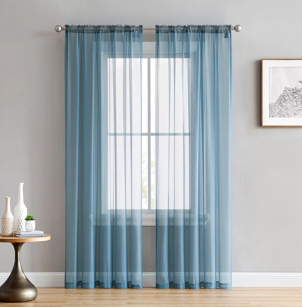 Sheer voile curtains give a light, romantic and airy look to a room by allowing sunlight to pass through the curtains. The fabric of voile curtains makes a unique window treatment that allows you to see outside but still allowing for privacy. For most home owners this is a great feature of sheer voile grommet curtains. Light weight sheer voile curtains are a very effective decorating tool. Because of the lightness to the fabric allow light to enter the room while still providing privacy. They can be used for in many other ways as well. One of the great qualities to sheer voile curtains is they they come in a wide variety of colors and are generally inexpensive. This allows your to use them in every room of the house without breaking your budget. Sheer curtains are very easy to install and make them a great addition to any room as you can create a designer look with little effort. Each curtain panel can fit a curtain rod up to 1. 5 inch. Fiber Content: 100% Polyester. Package contains two (2) voile sheer window curtain panels. Care Instructions: Machine wash cold, Gentle Cycle. Use only non-chlorine. Bleach as needed. Tumble Dry Low. Iron on lowest setting as needed.