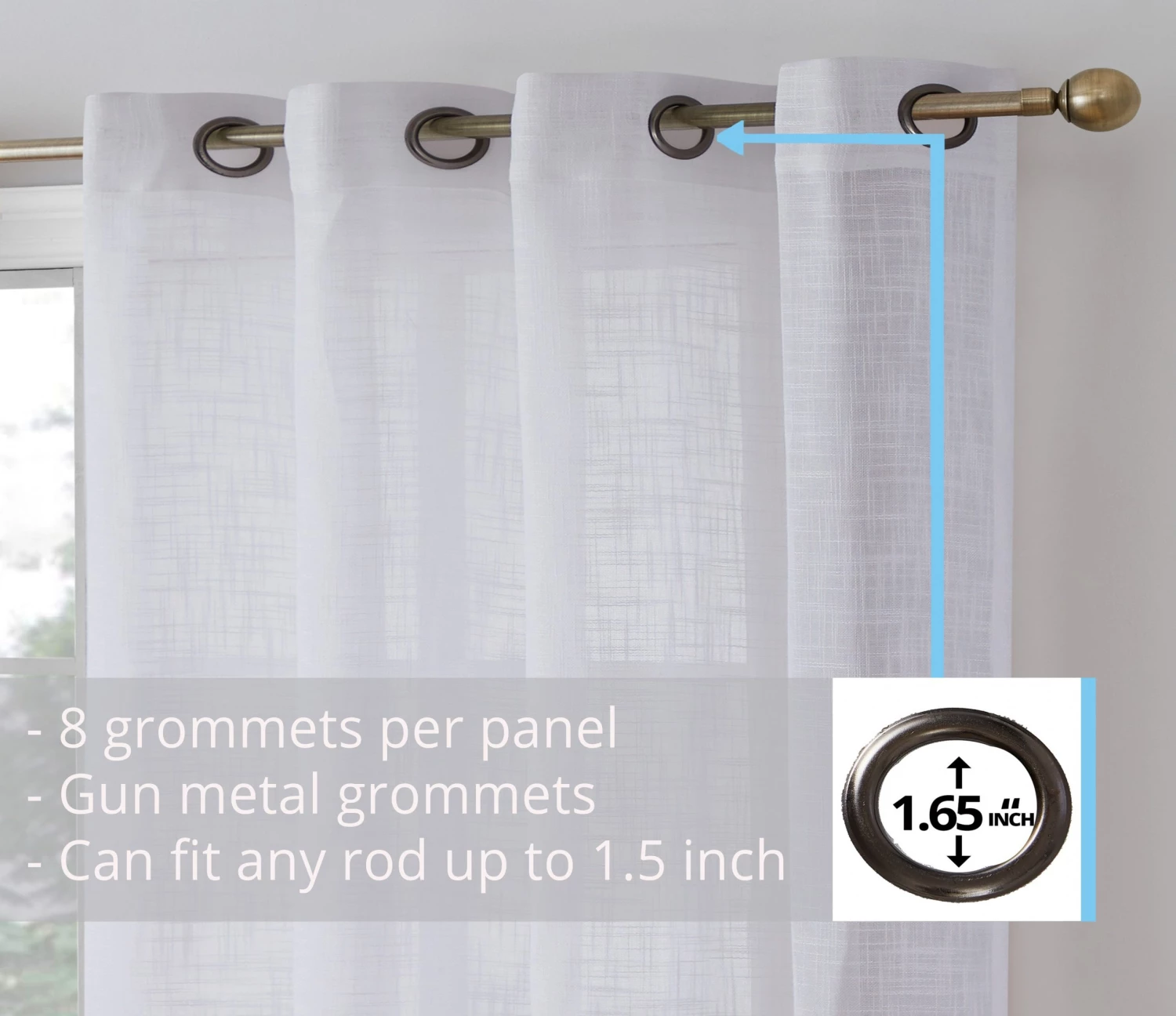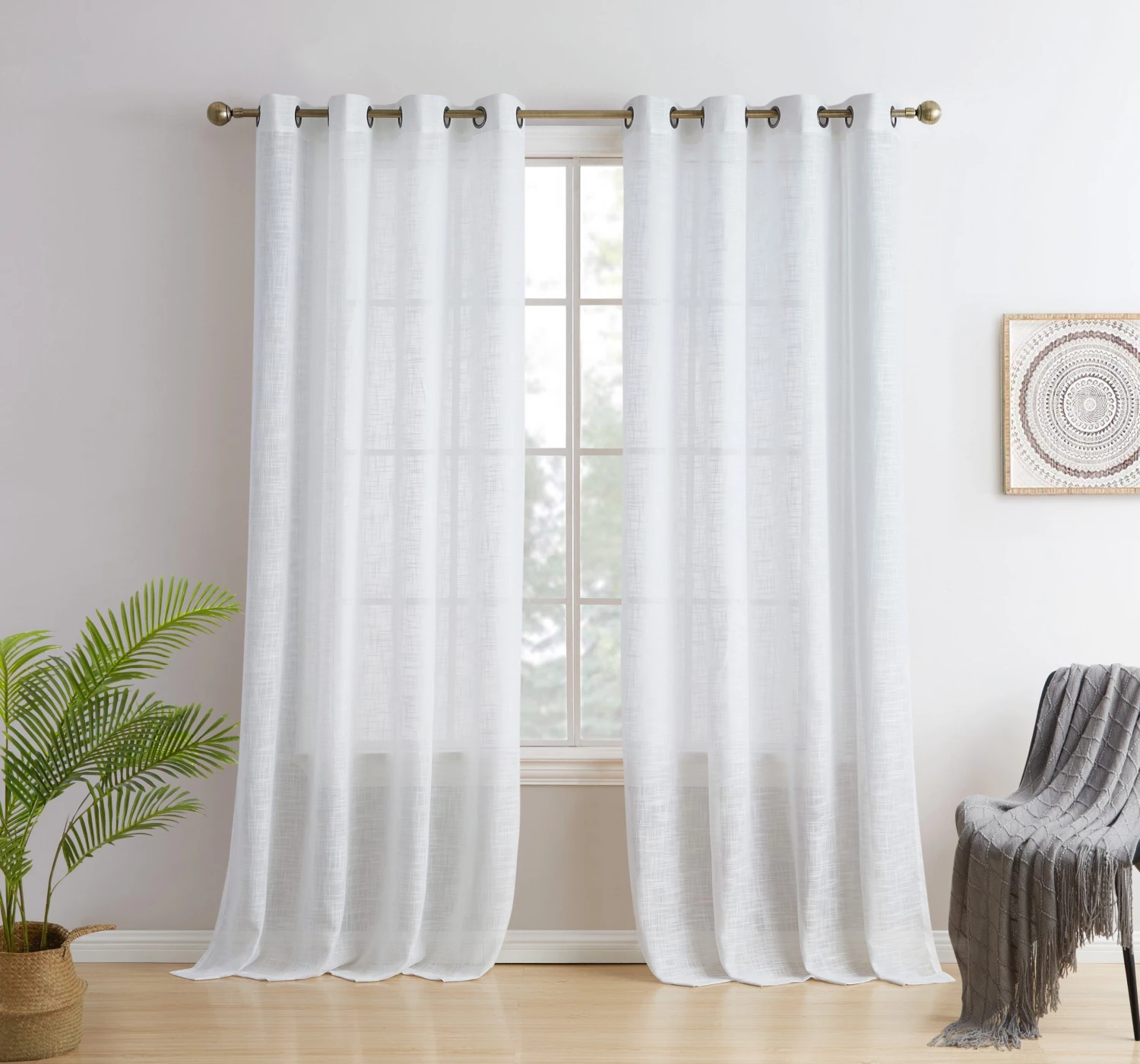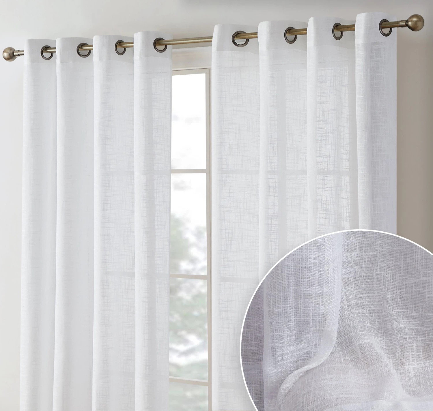 HLC.ME Sheer Curtains Madison Faux Linen Sheer Grommet Panels – White – Set Of 2