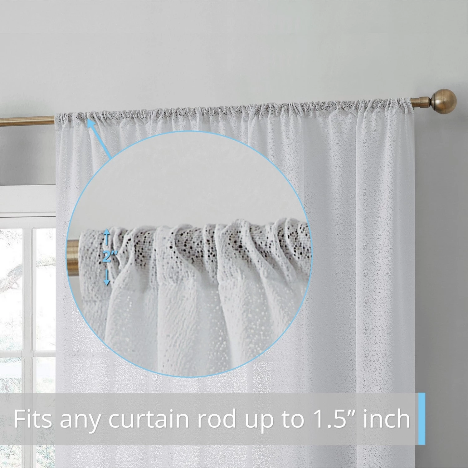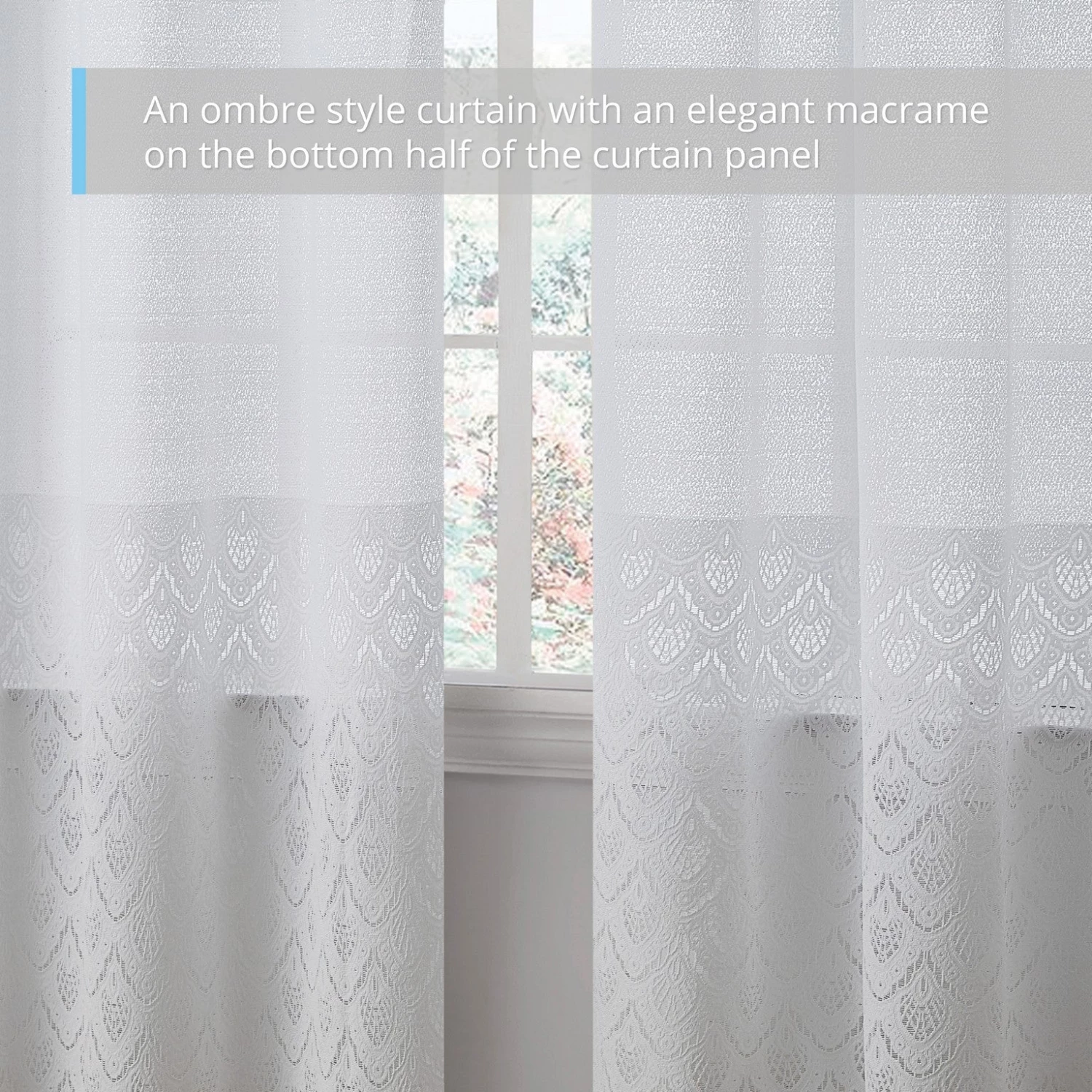 HLC.ME Sheer Curtains Monaco Macrame Lace Sheer Rod Pocket Curtain Panels – White – Set Of 2