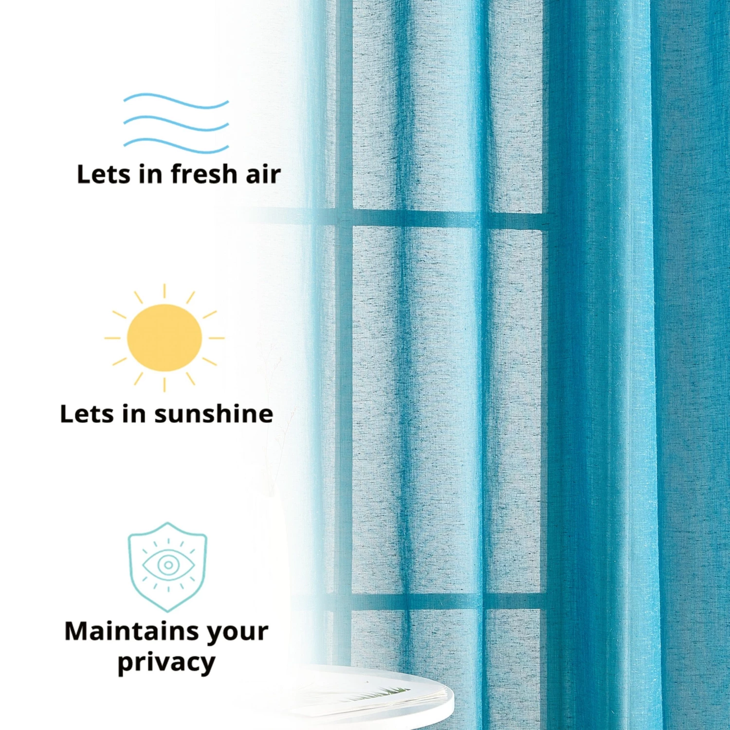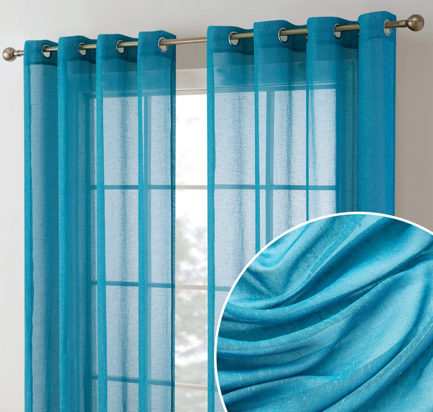 HLC.ME Sheer Curtains Sierra Linen Sheer Grommet Curtain Panels – Teal Blue – Set Of 2