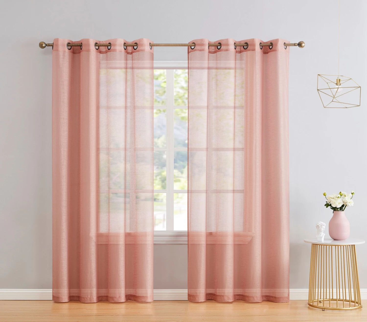 HLC.ME Sheer Grommet Curtain Panels – Blush Pink – Set Of 2
