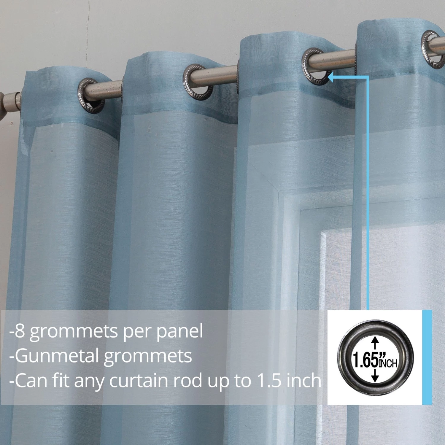 HLC.ME Sheer Grommet Curtain Panels – Dusty Blue – Set Of 2 Sheer Curtains
