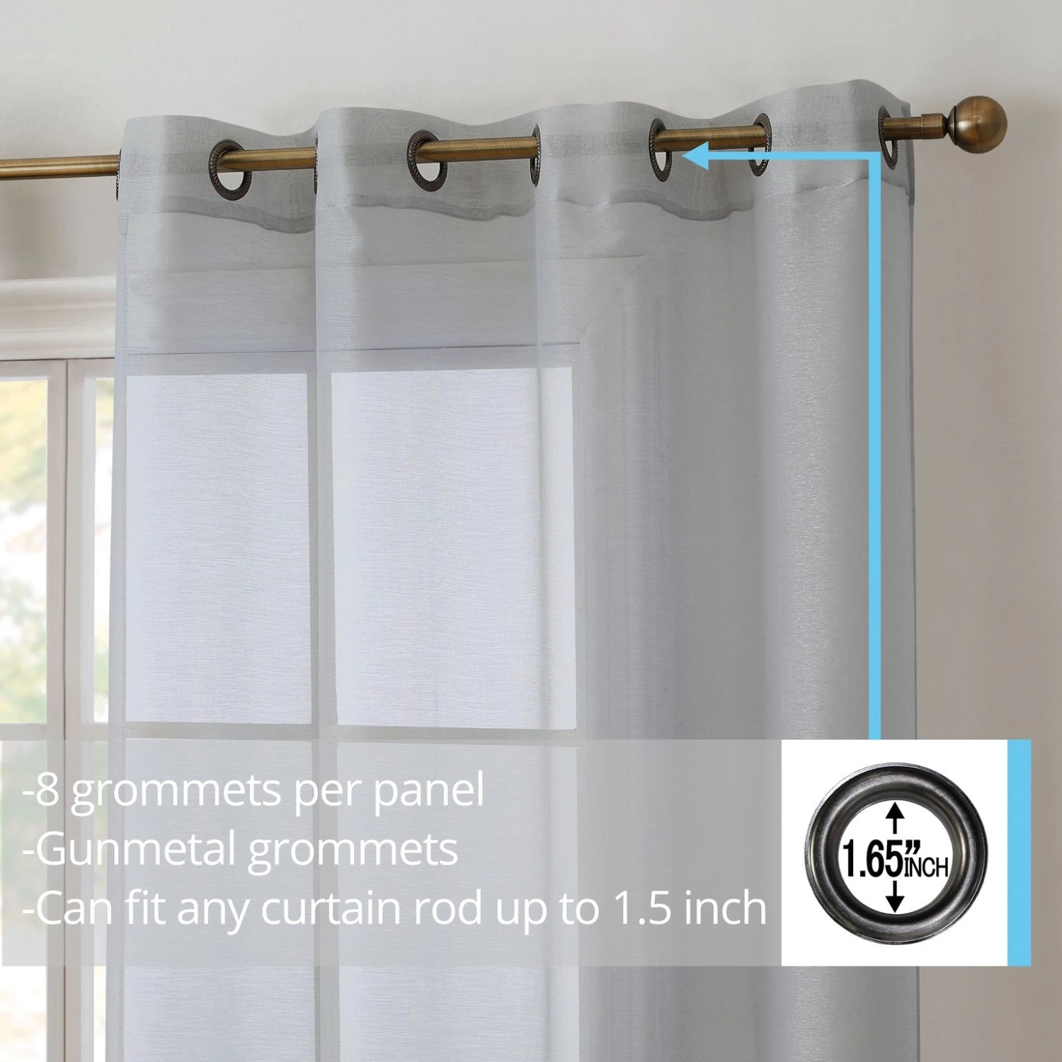 HLC.ME Sheer Grommet Curtain Panels – Silver Grey – Set Of 2