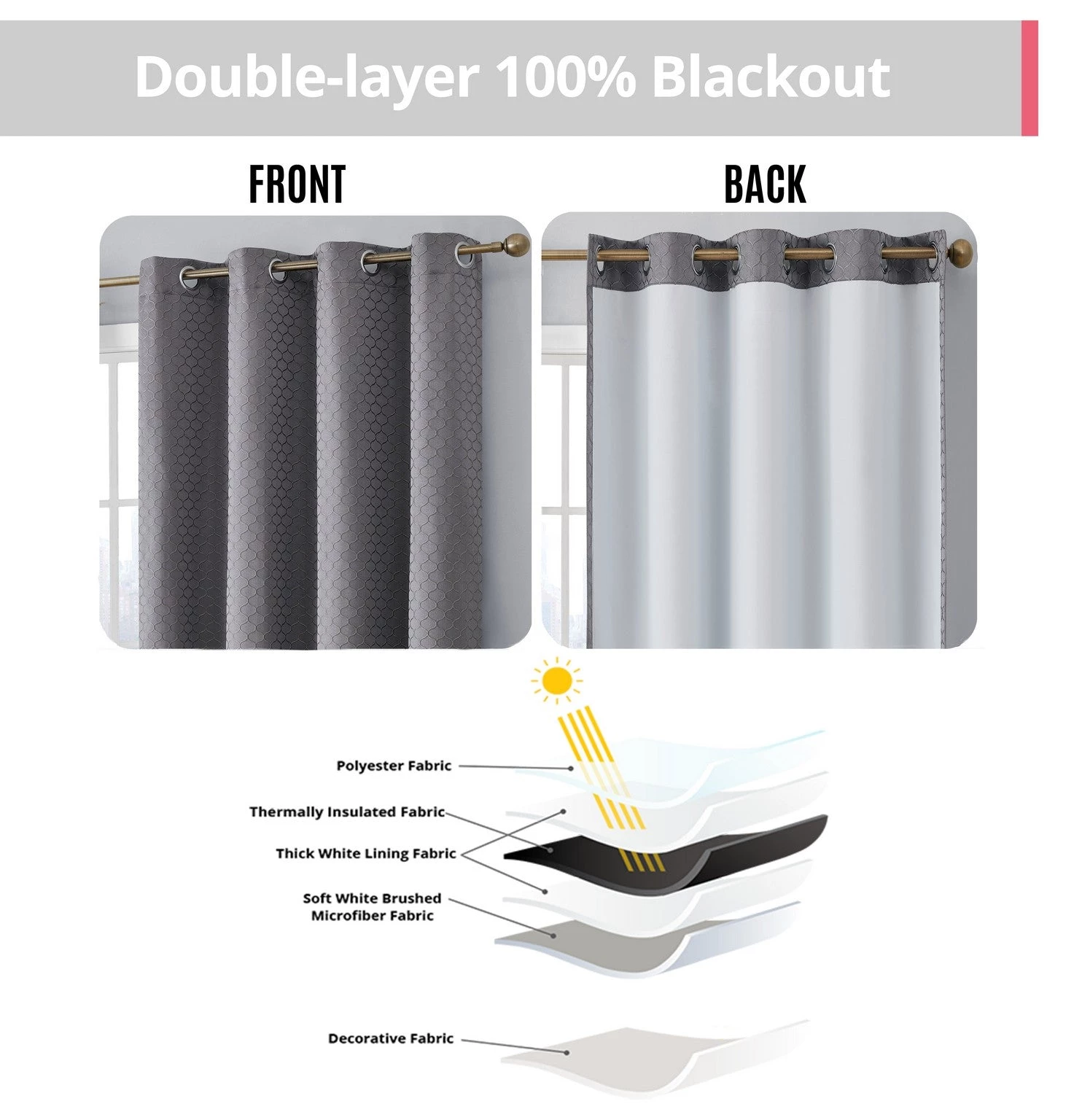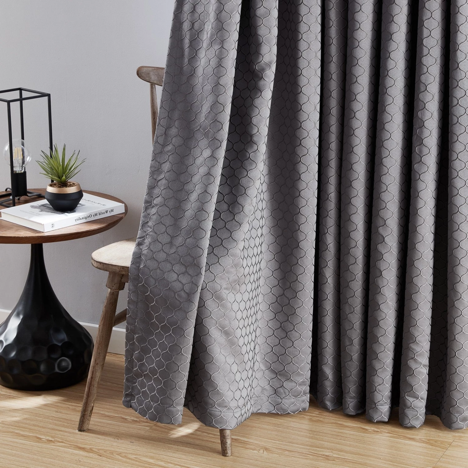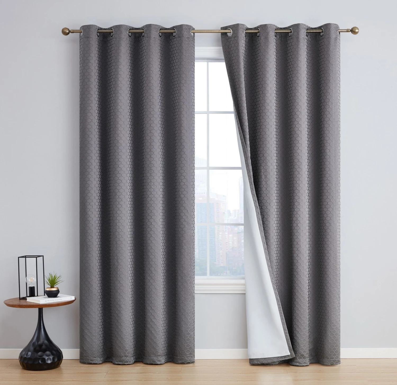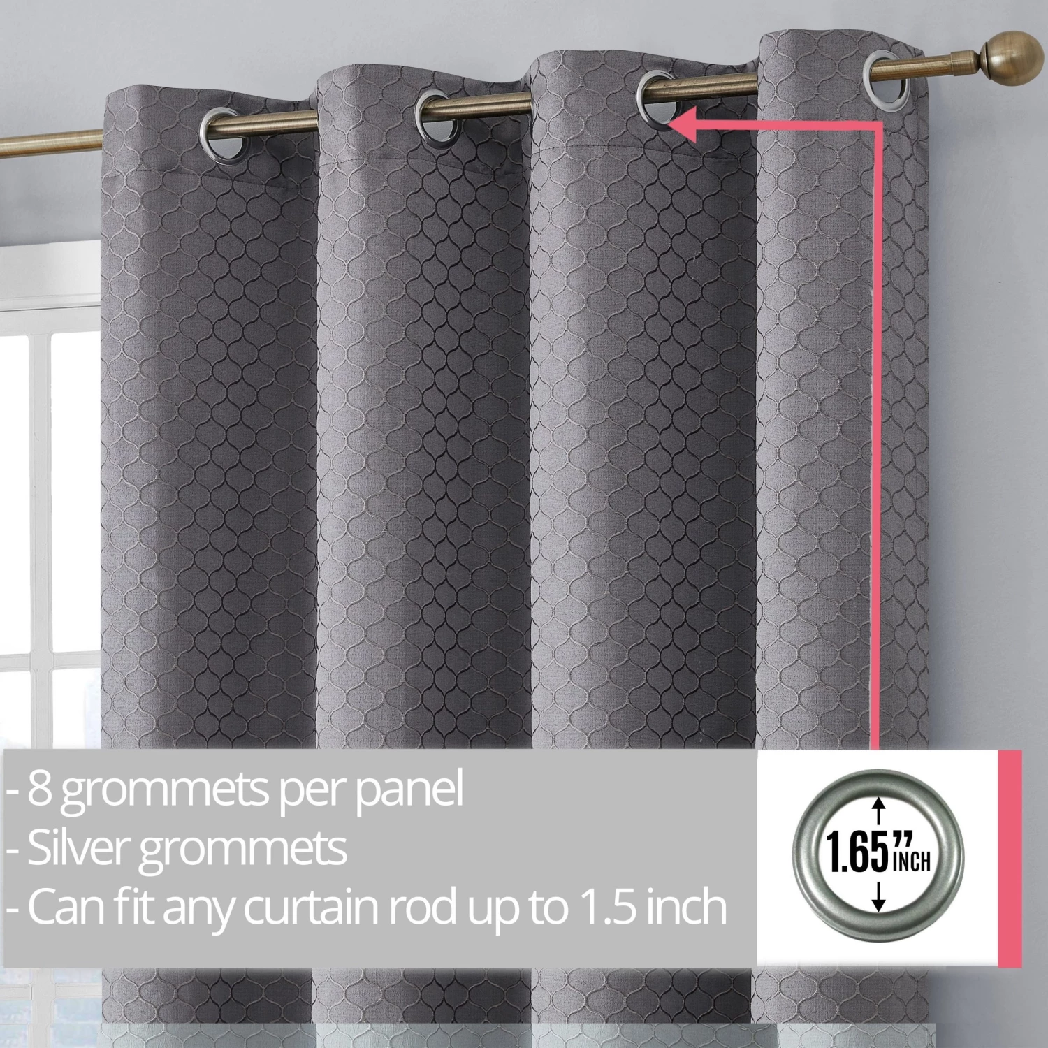 HLC.ME Siena Geometric 100% Blackout Grommet Curtains – Charcoal – Set Of 2 Blackout Curtains