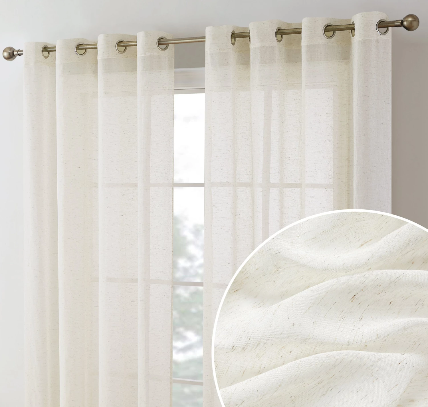 HLC.ME Sierra Linen Sheer Grommet Curtain Panels – Natural Linen – Set Of 2