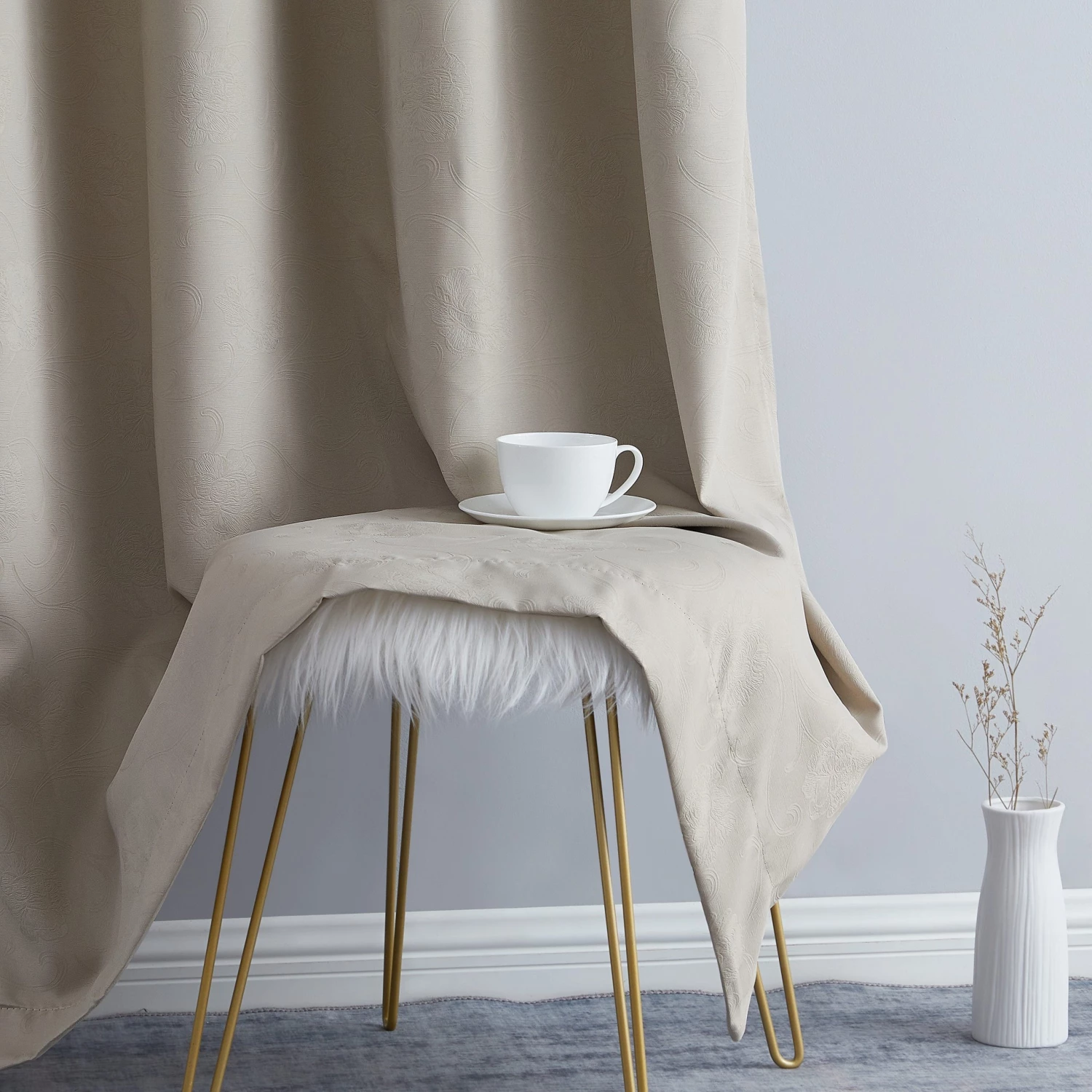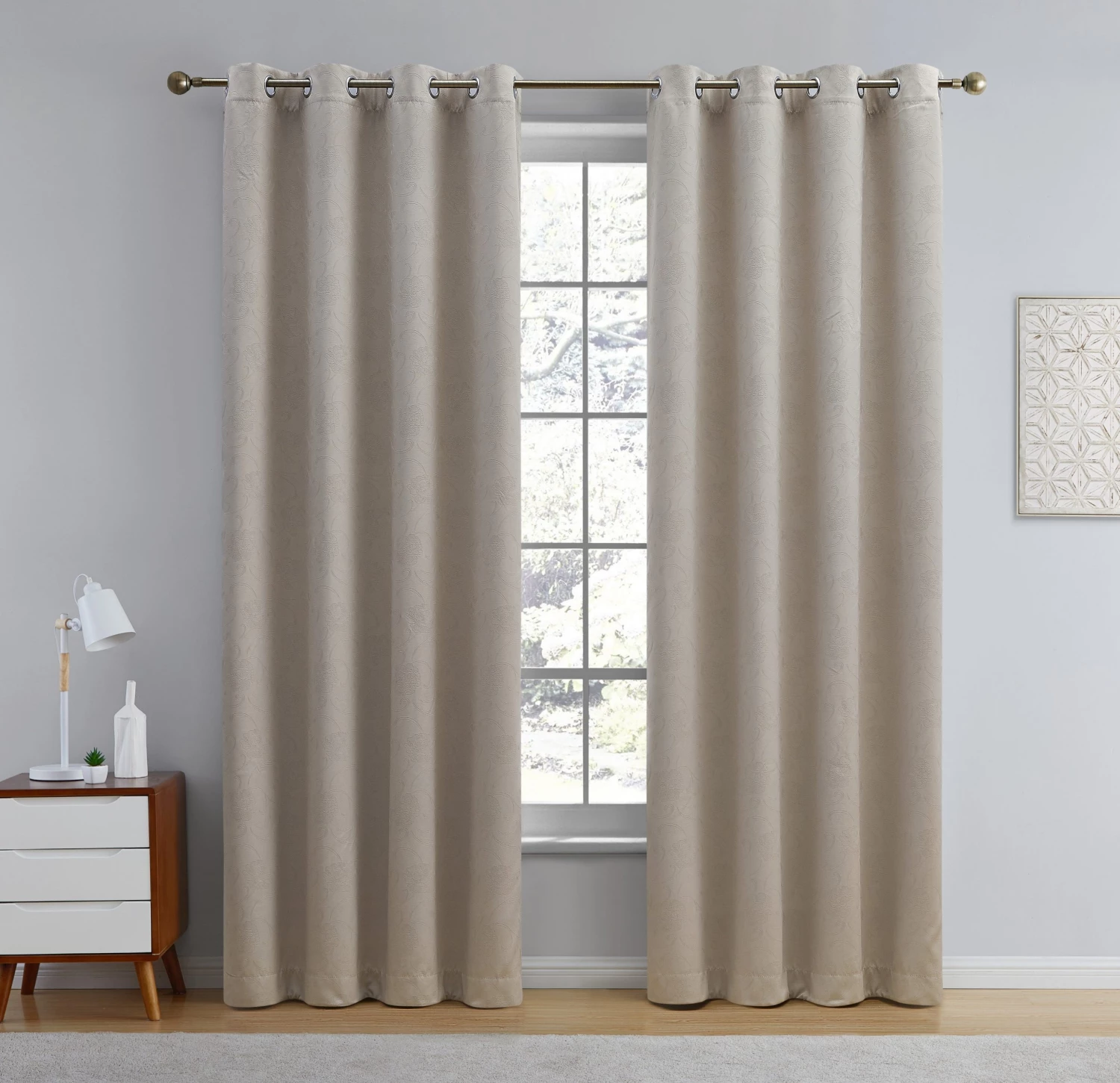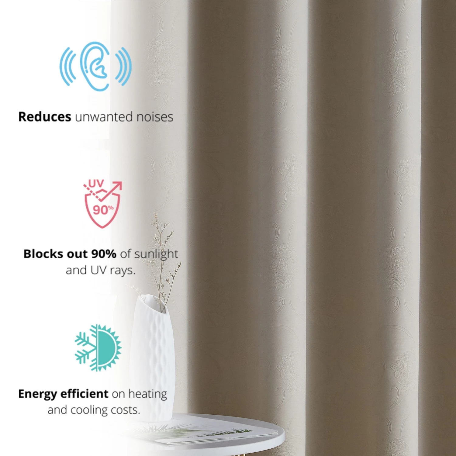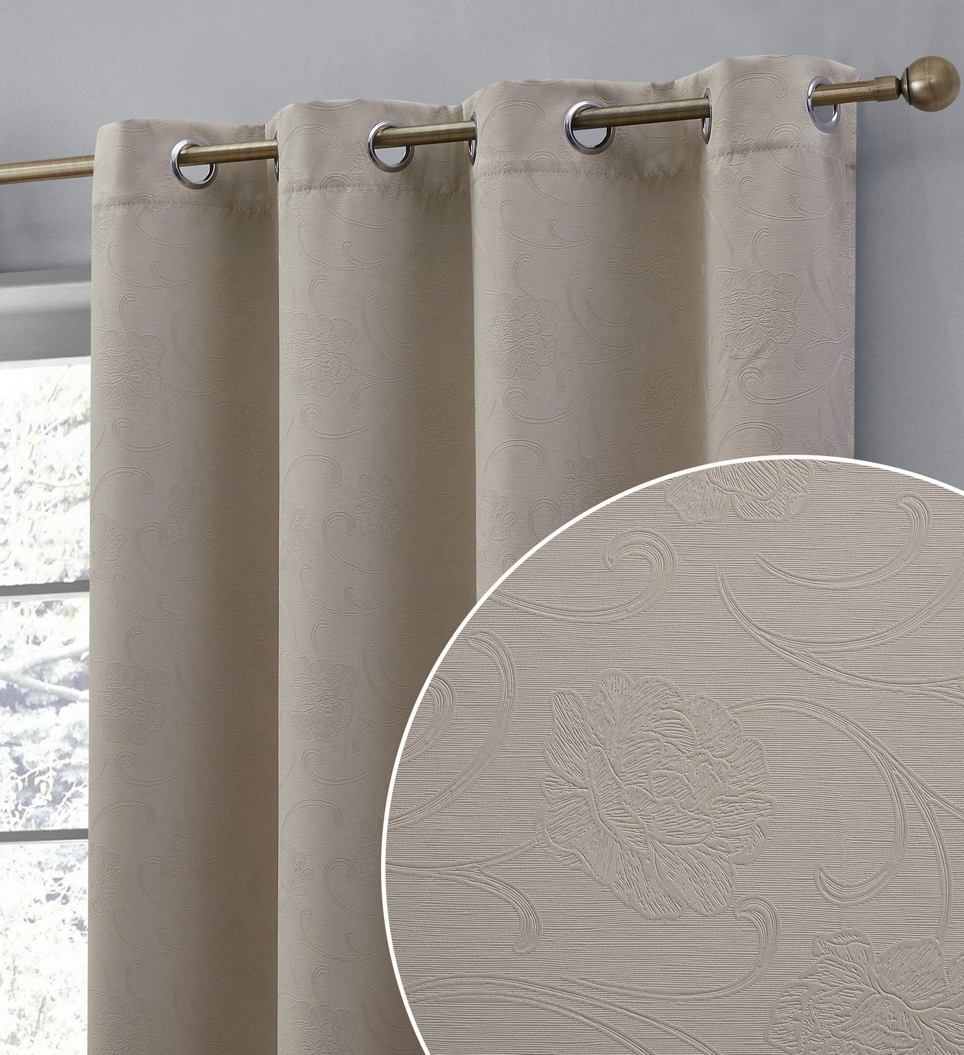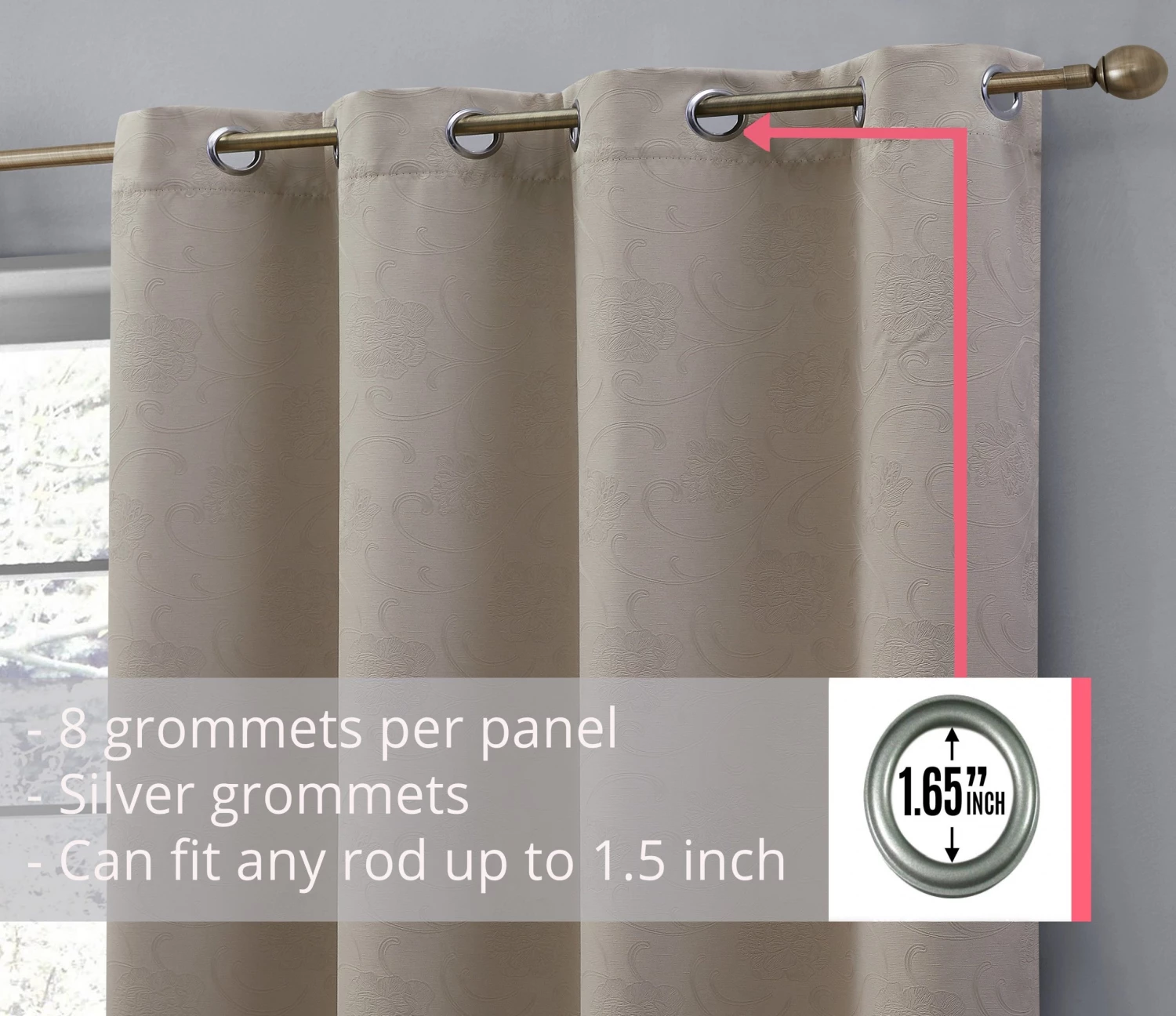 HLC.ME Taylor Floral Blackout Grommet Curtain Panels – Taupe – Set Of 2 Blackout Curtains
