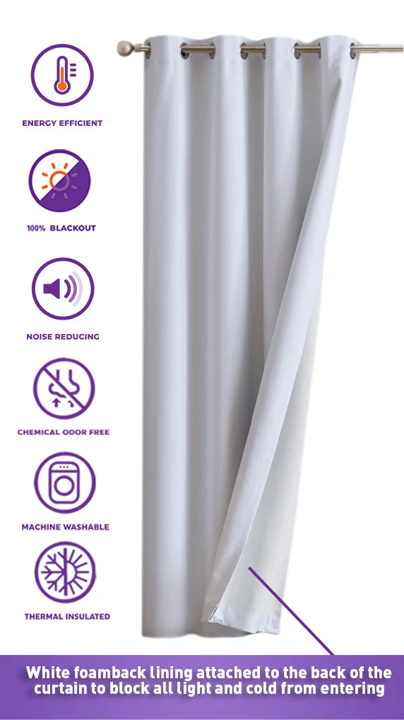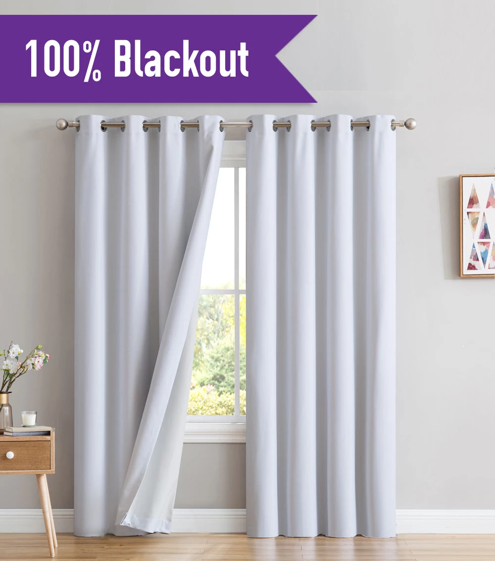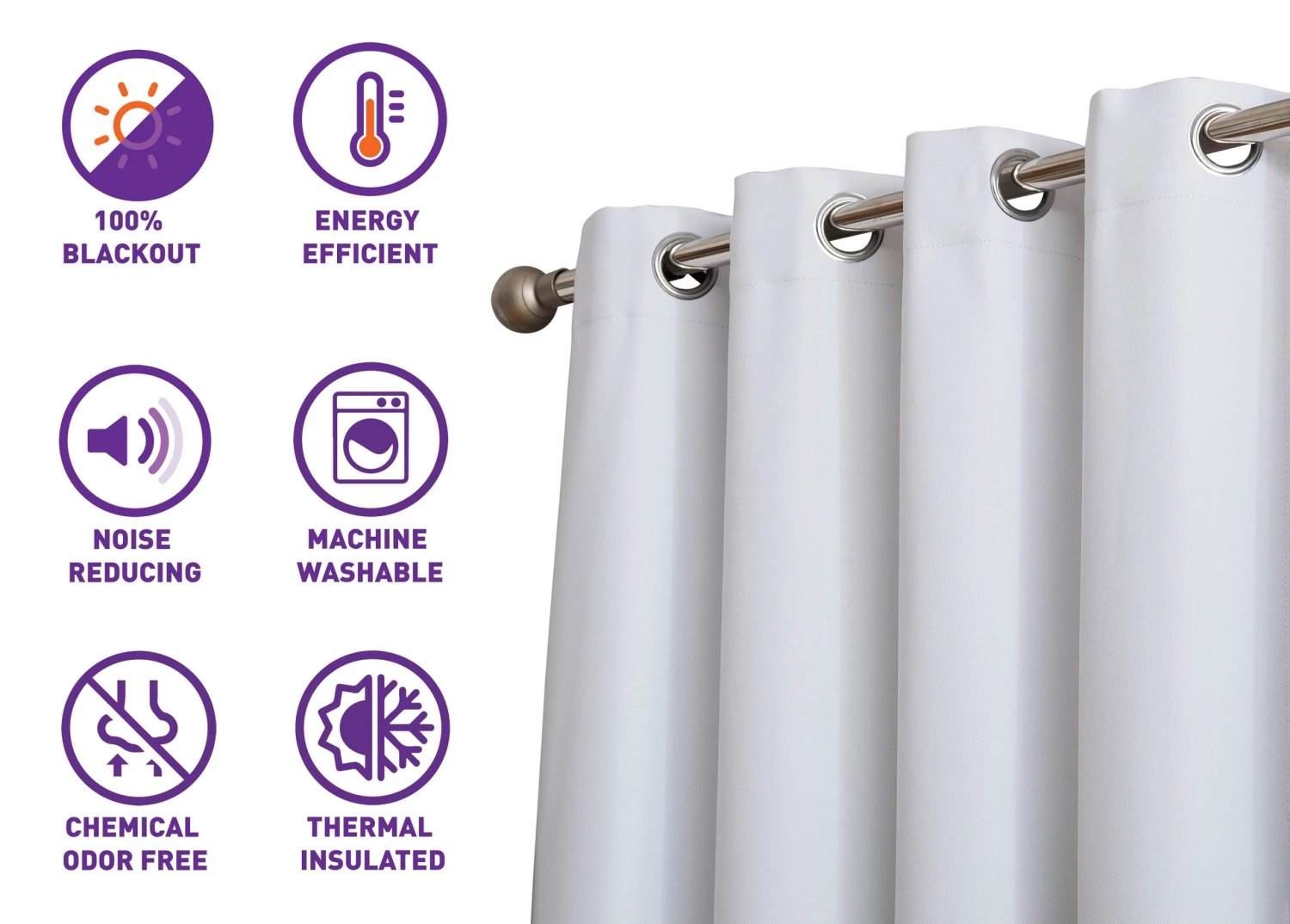 HLC.ME Textured Lined 100% Blackout Grommet Curtain Panels – White – Set Of 2