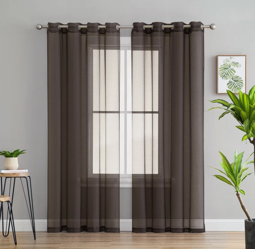 Sheer Curtains HLC.ME Sheer Grommet Curtain Panels – Chocolate Brown – Set Of 2